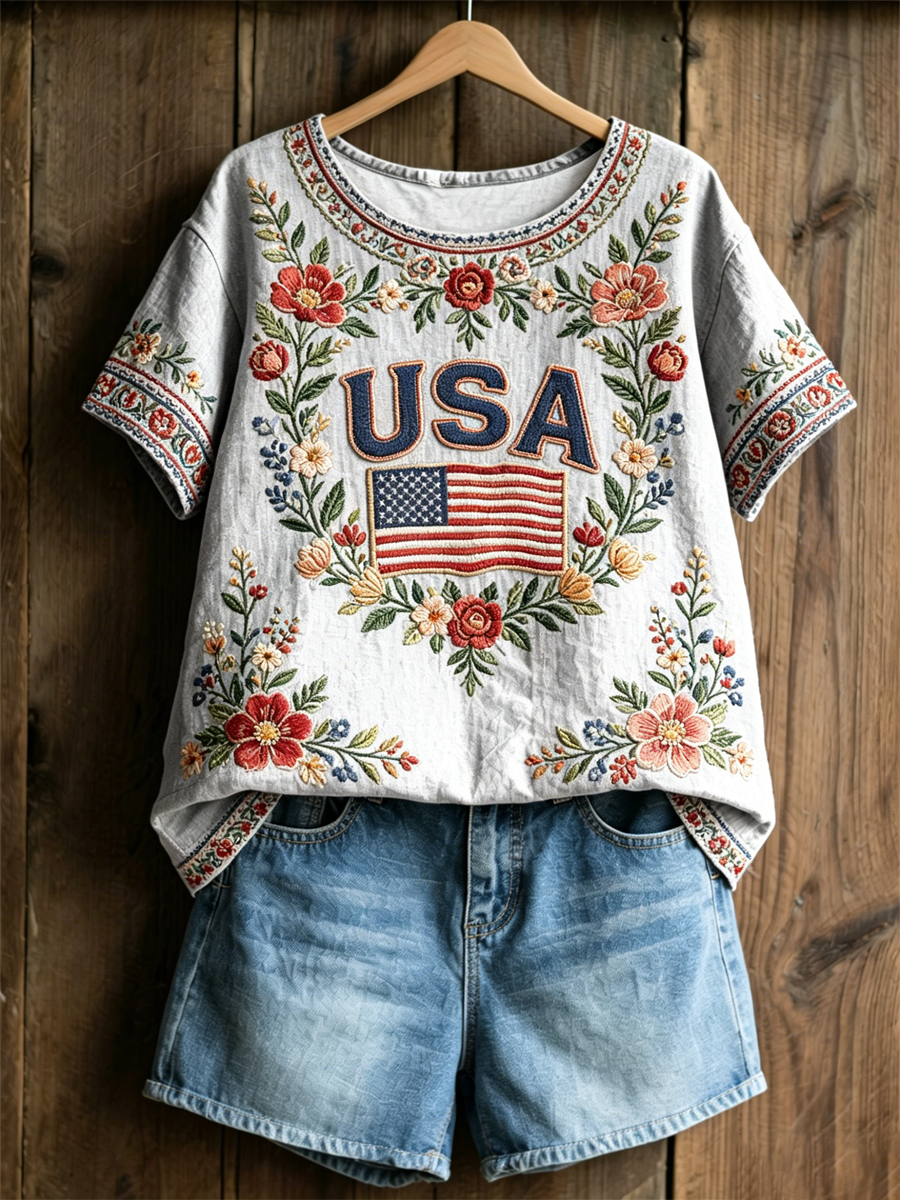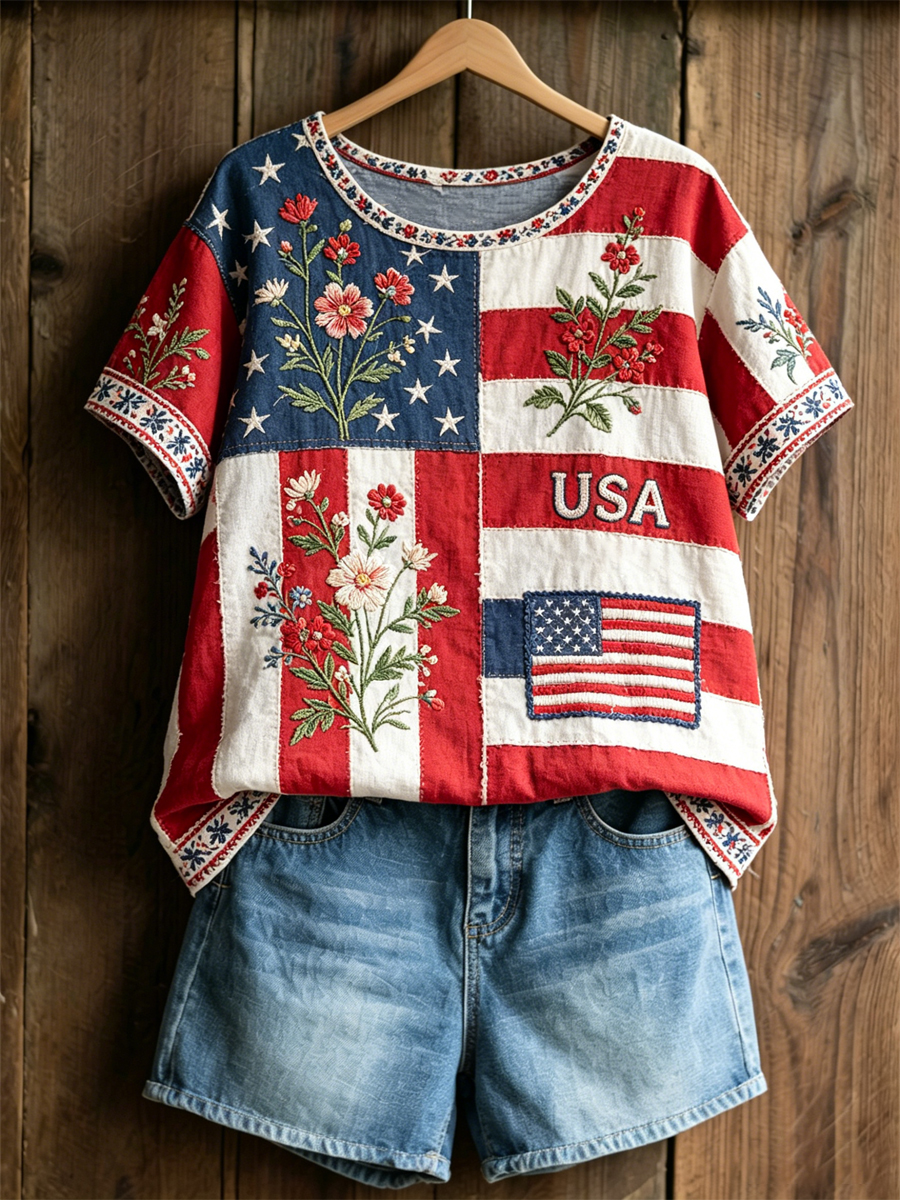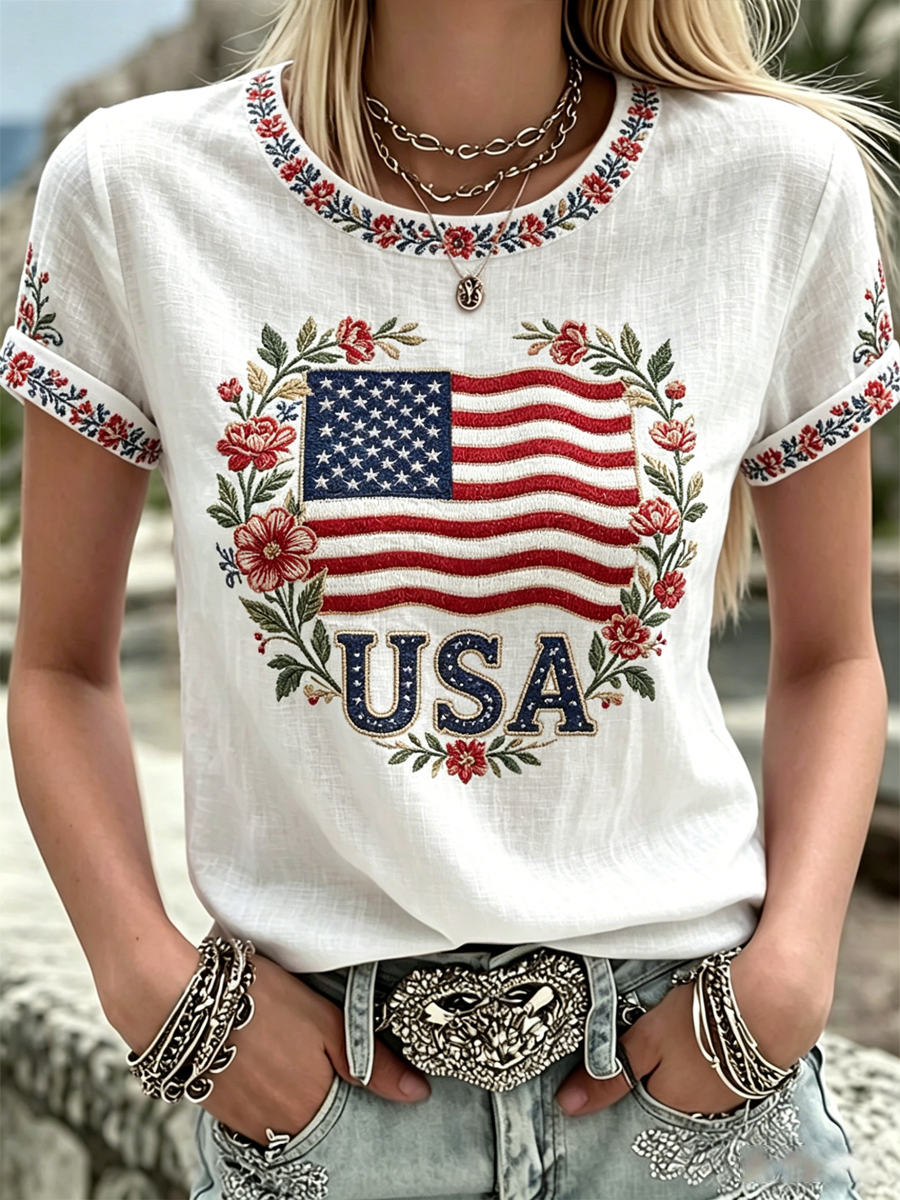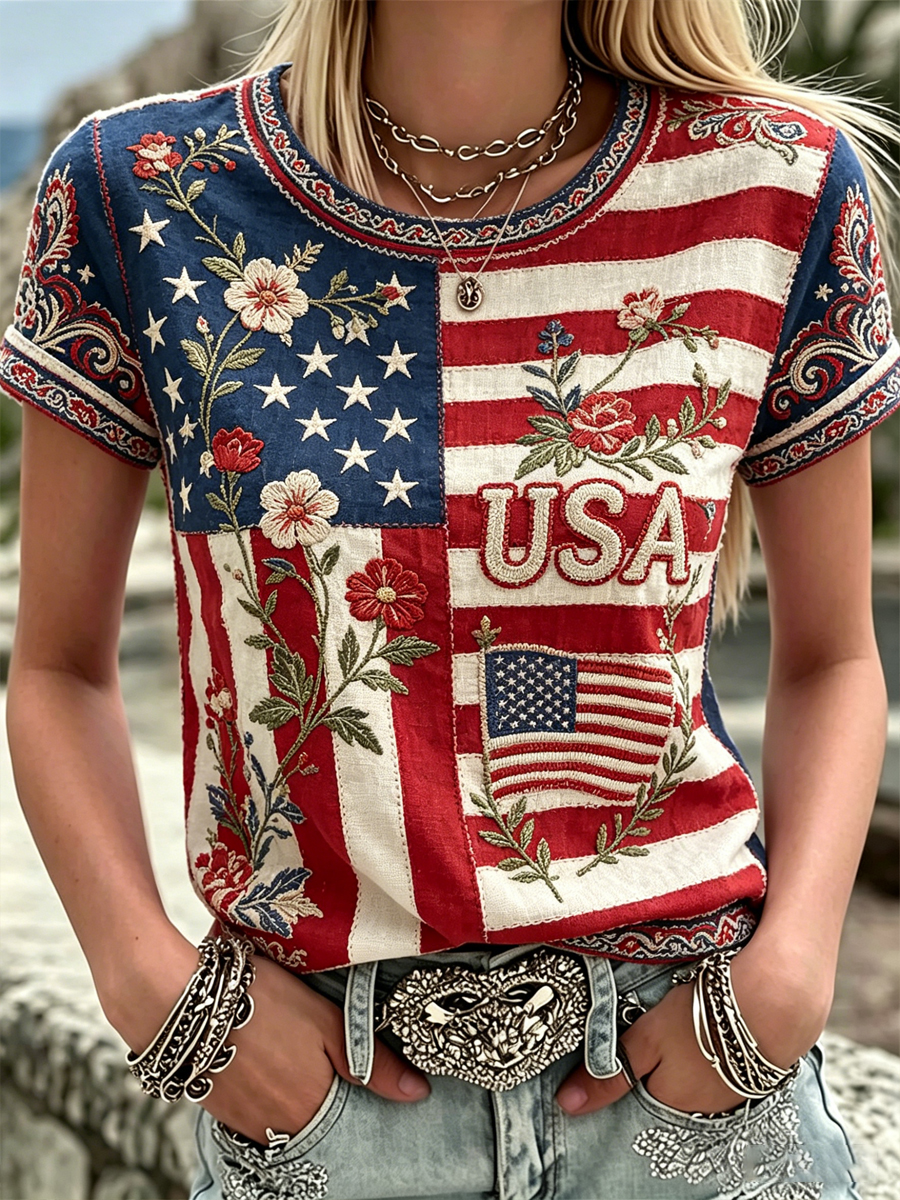 Women's America Floral Print Casual T-shirt
