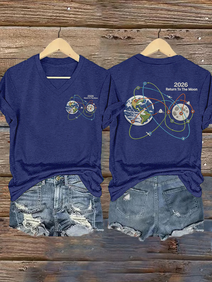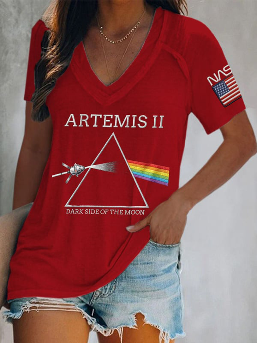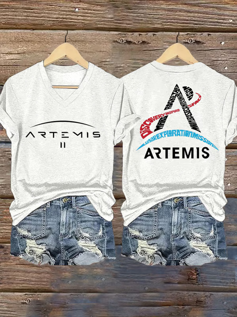 Women's Artemis II 2026 Print Casual V-Neck Tee