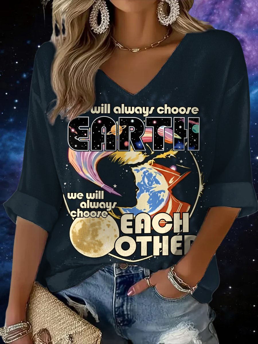 Women's Artemis II 2026 We Will Always Choose Each Other Print Casual Waffle Top