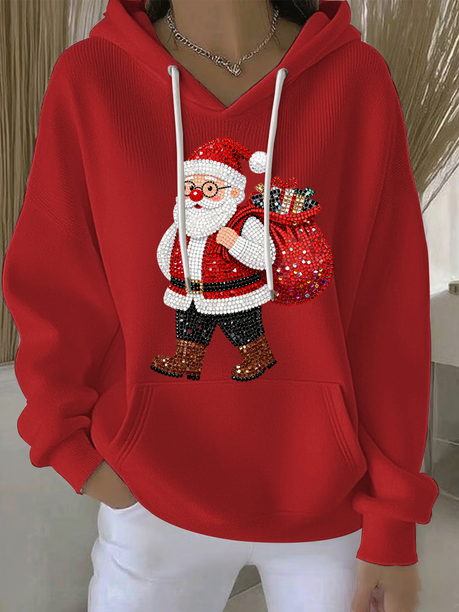 Women's Christmas Pearl Santa Claus Print Casual Hoodie
