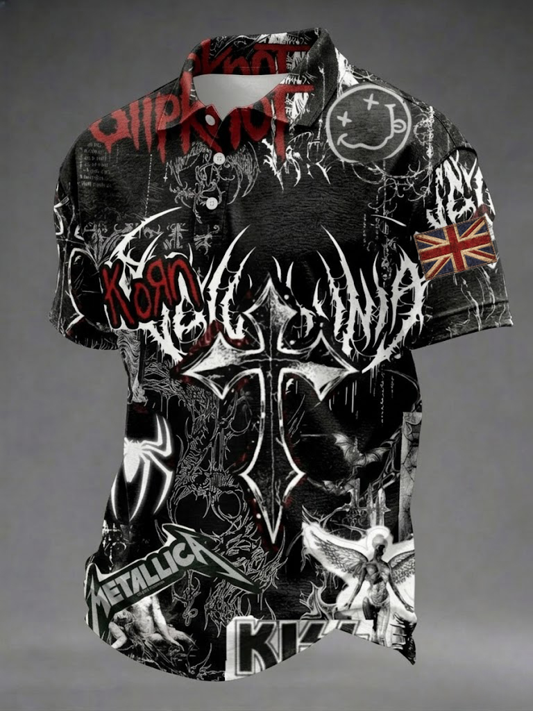 Men's Skull Graphic Print Short Sleeves Shirt