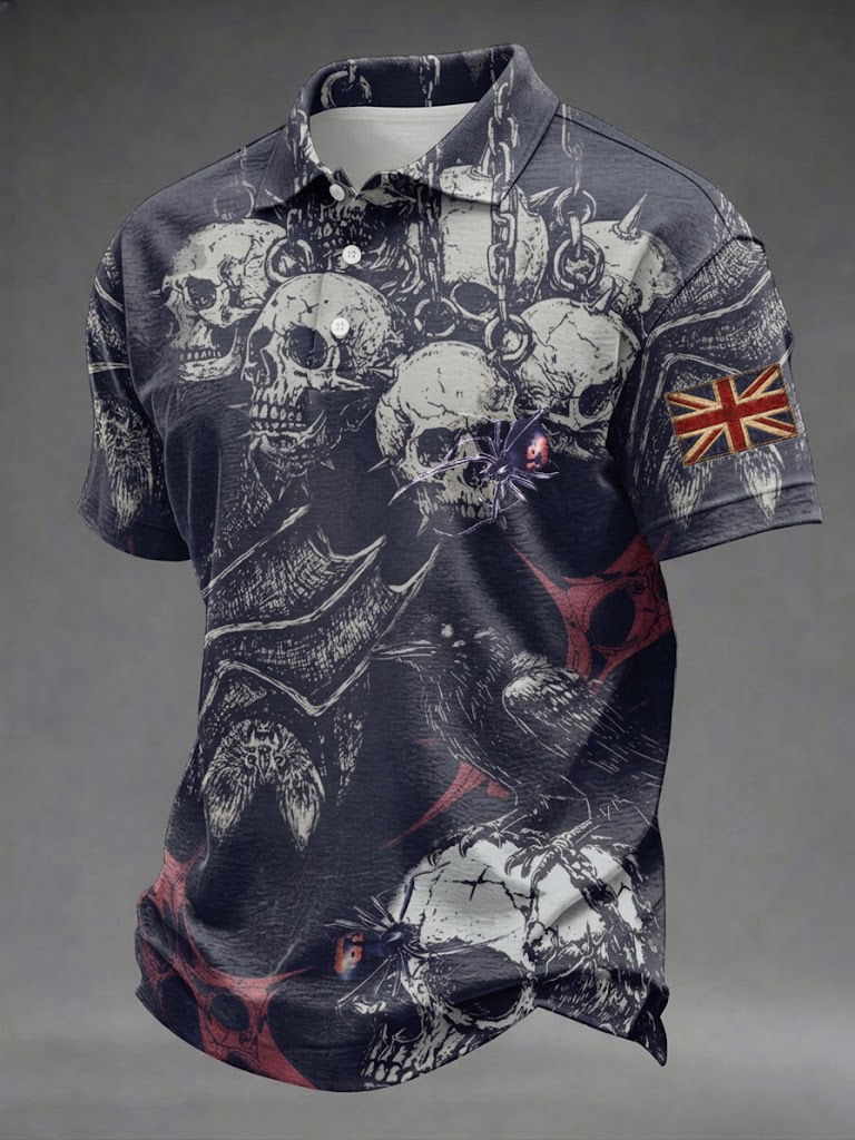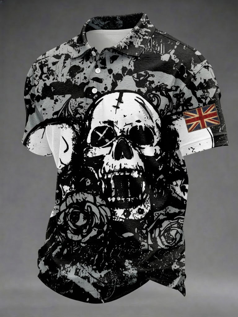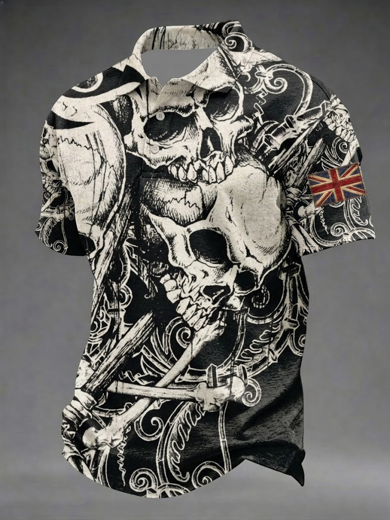 Men's Gothic Skull UK Flag Printed Shirt