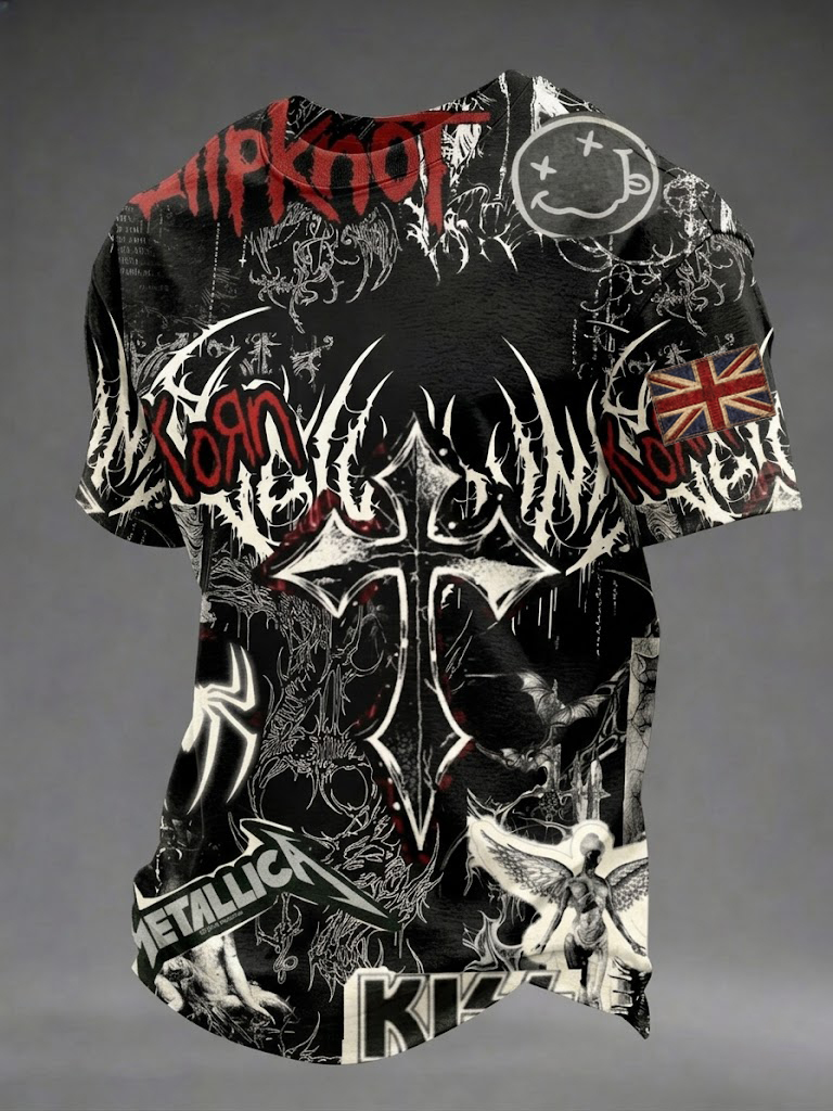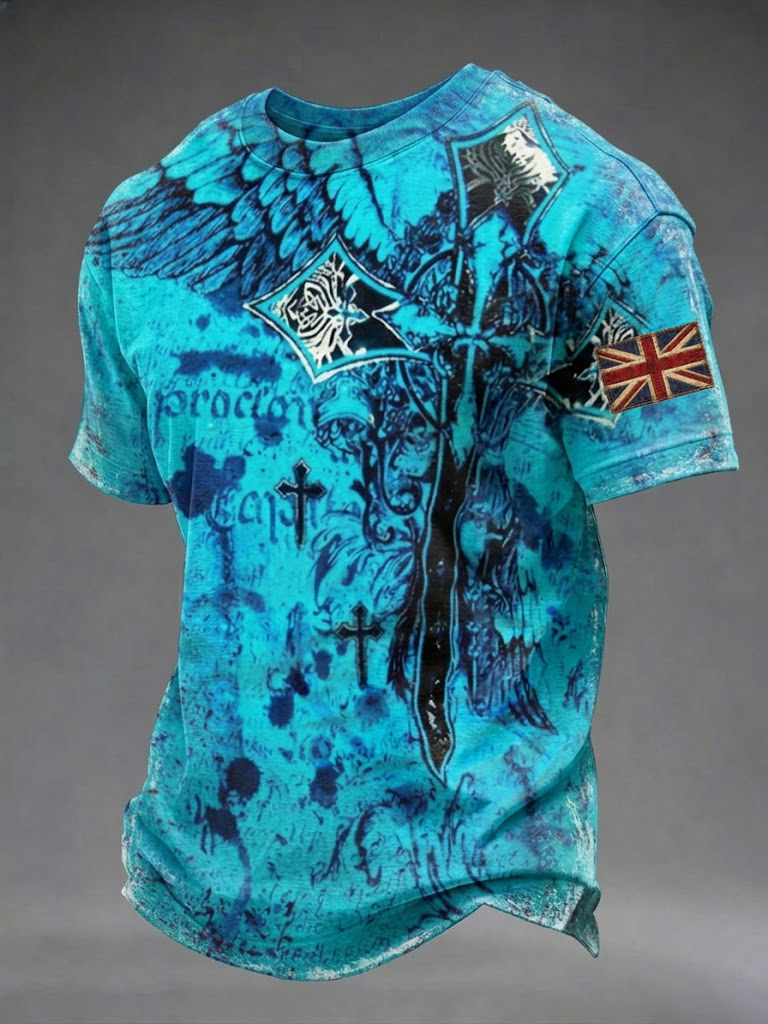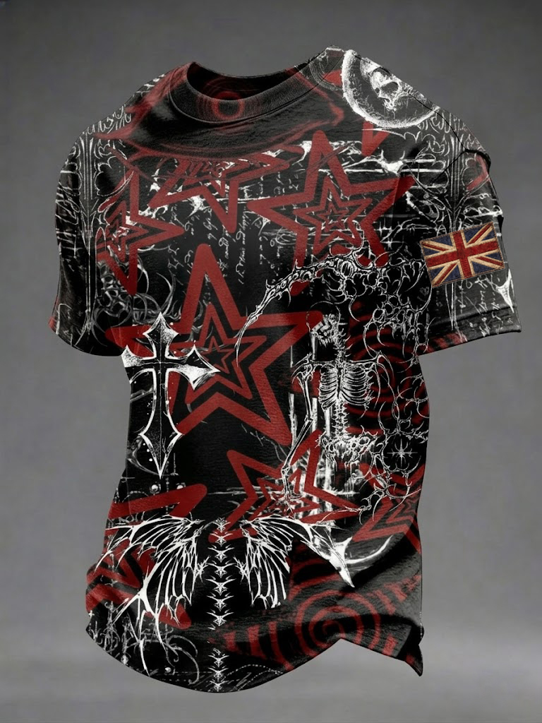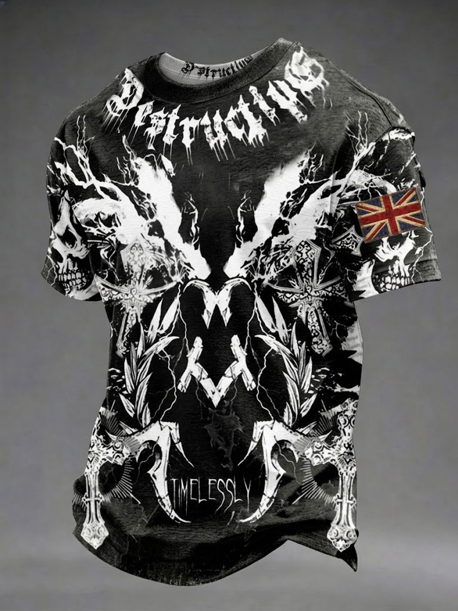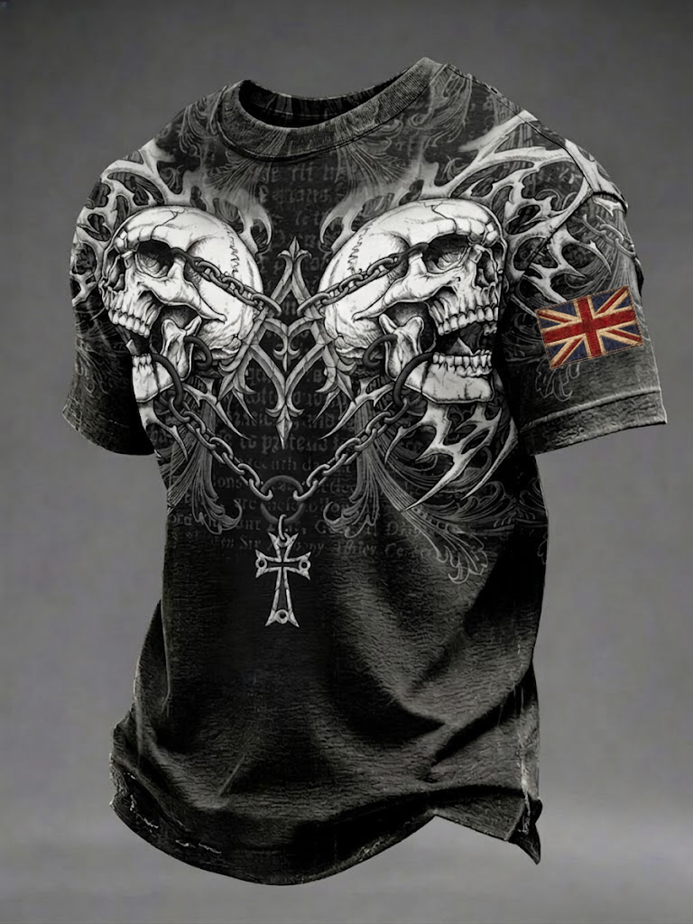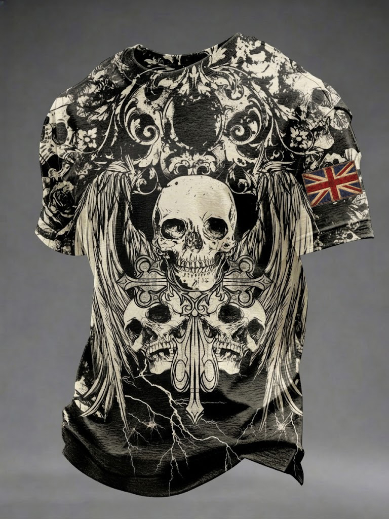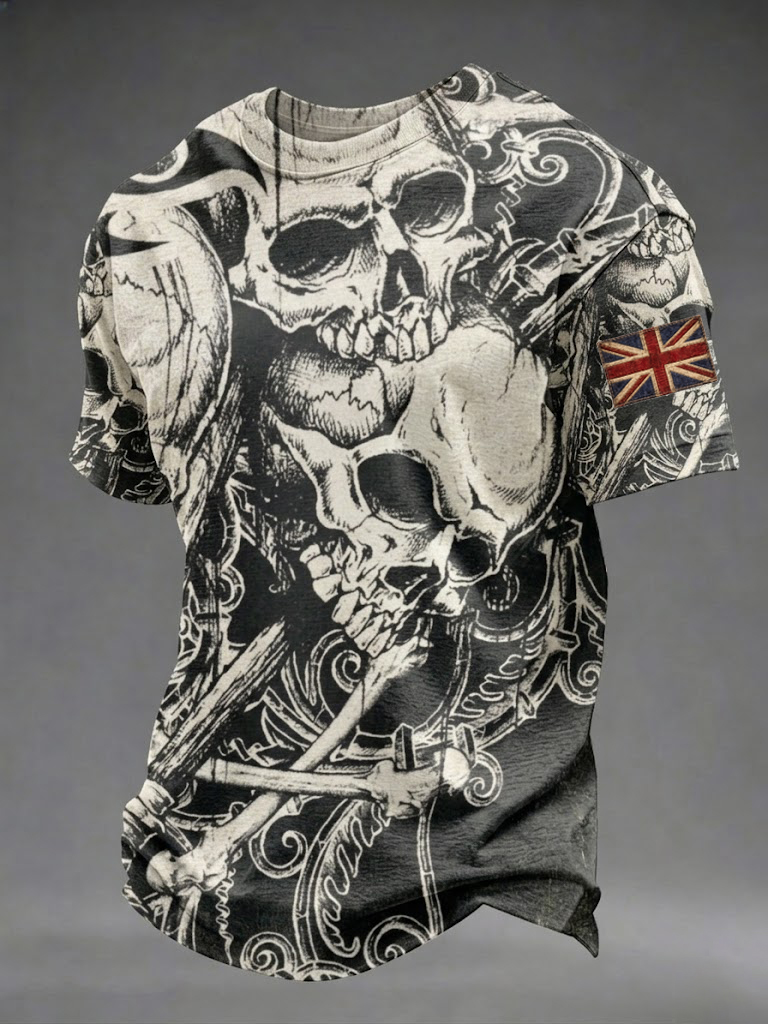 Men's Gothic Skull UK Flag Printed T-shirt