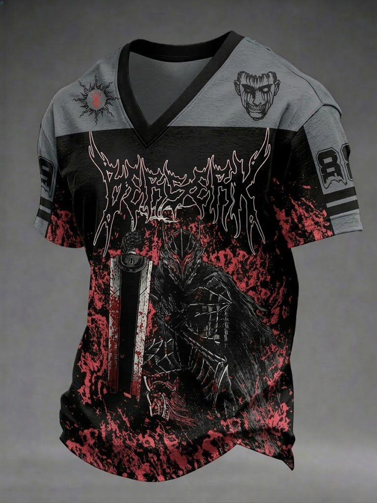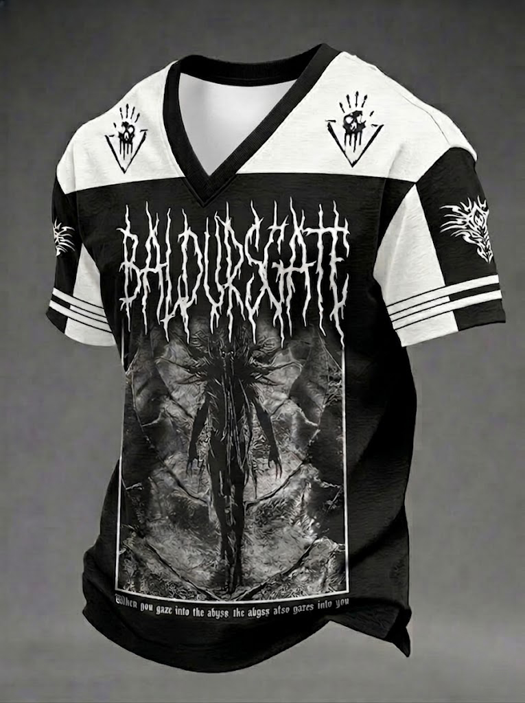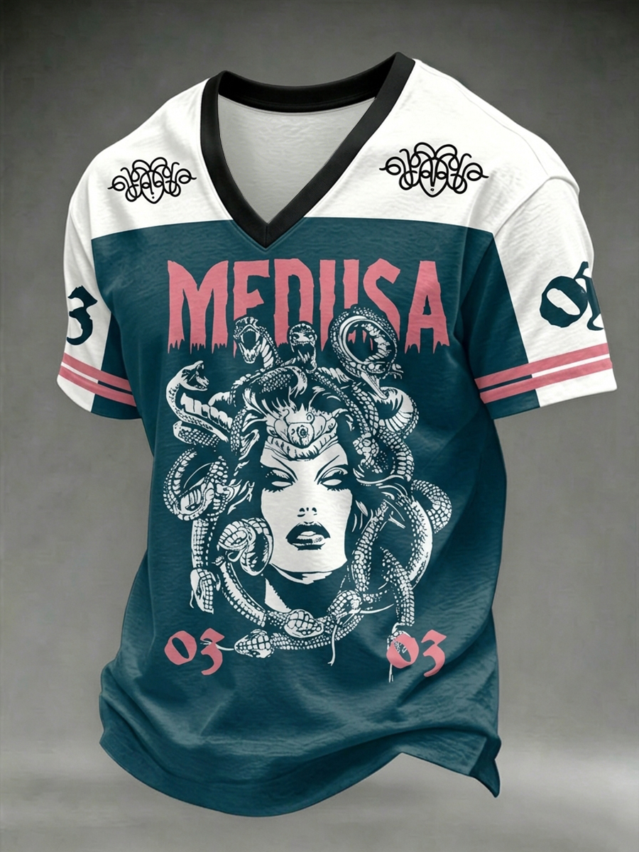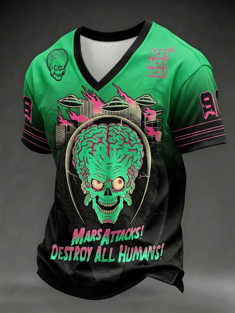 Men's Dark Style Skull Print V-neck T-shirt