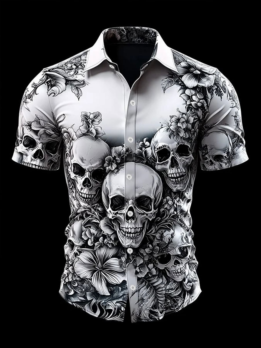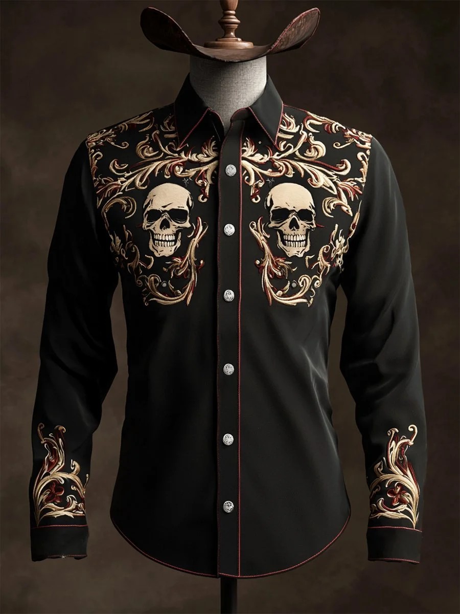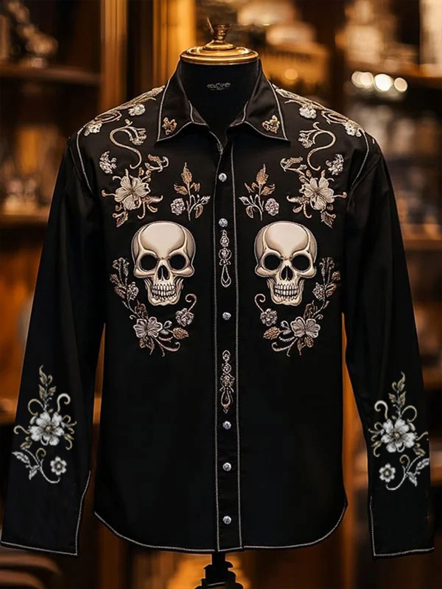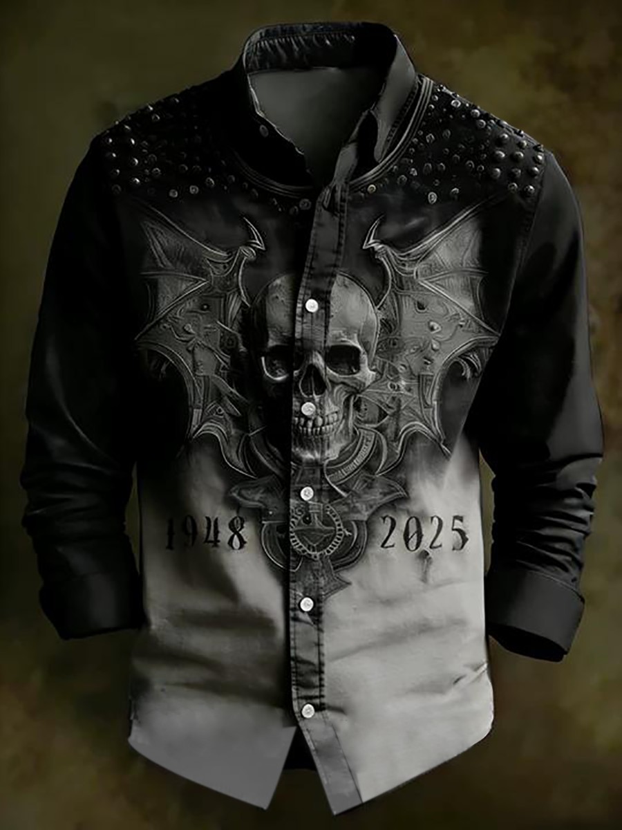Men's Retro Casual Skull Print Long Sleeve Shirt