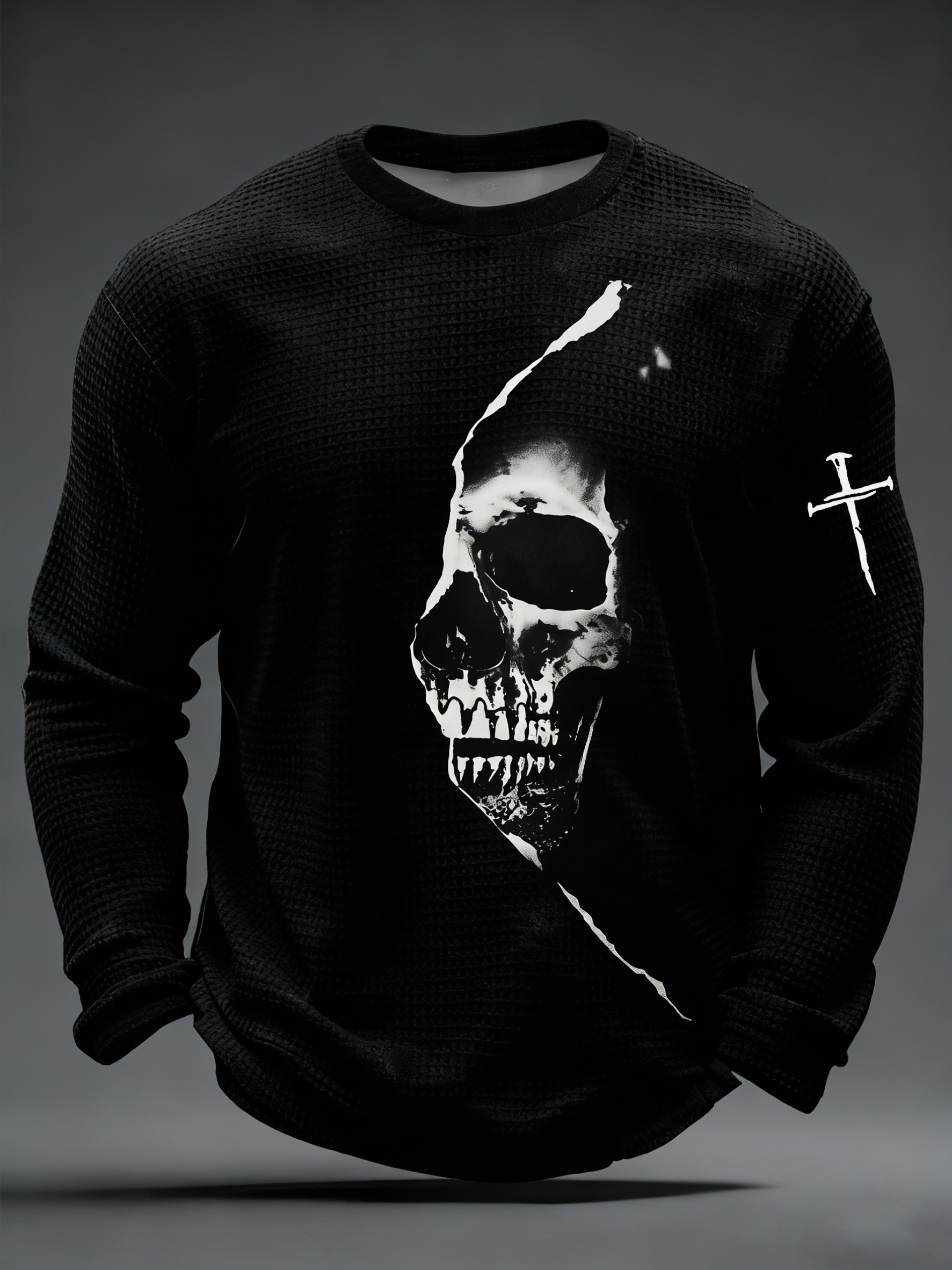 Men's Vintage Skull Faith Cross Waffle Long Sleeve T-Shirt