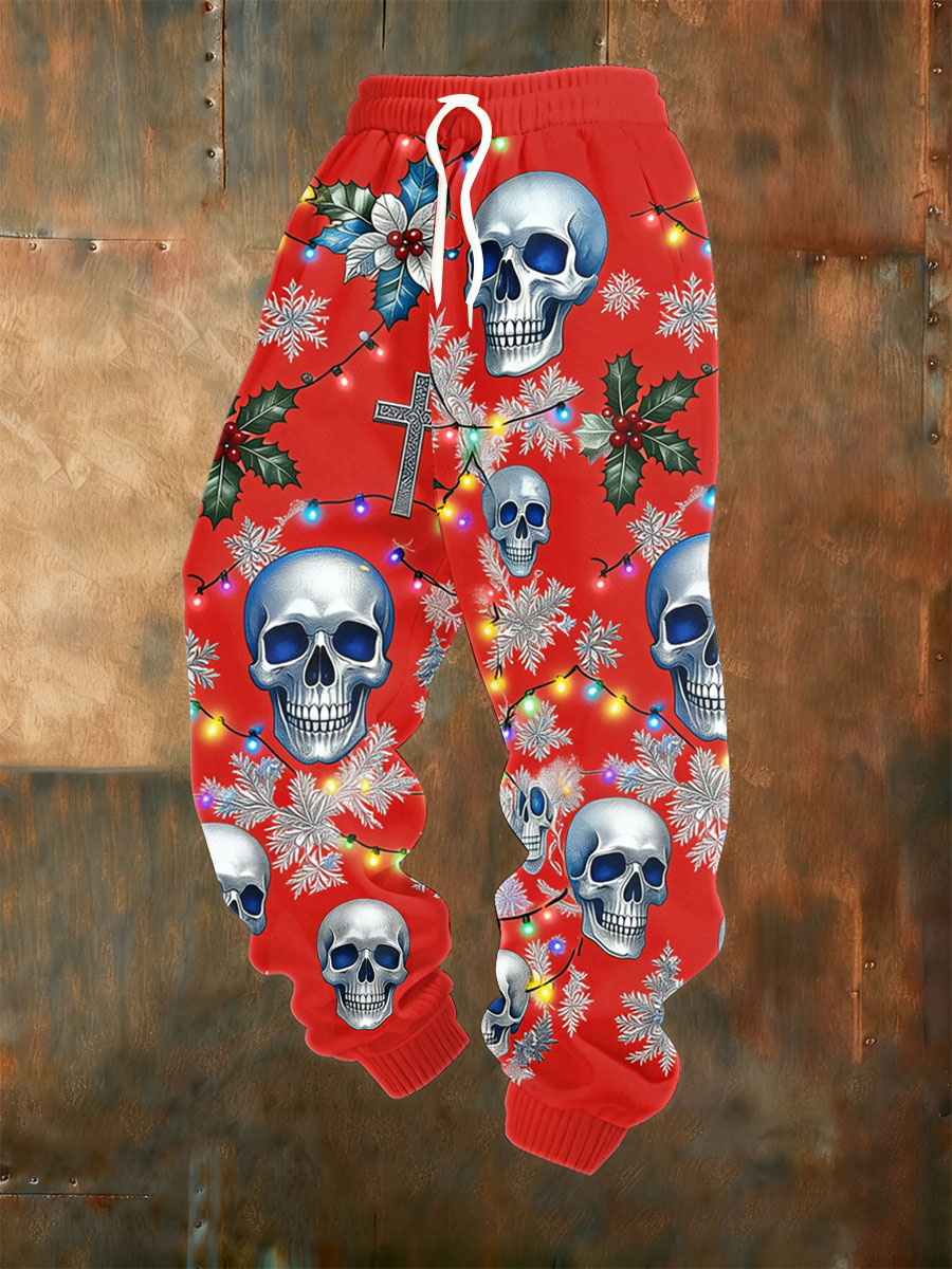 Men's Vintage Christmas Skull Checkered Cotton Hoodie