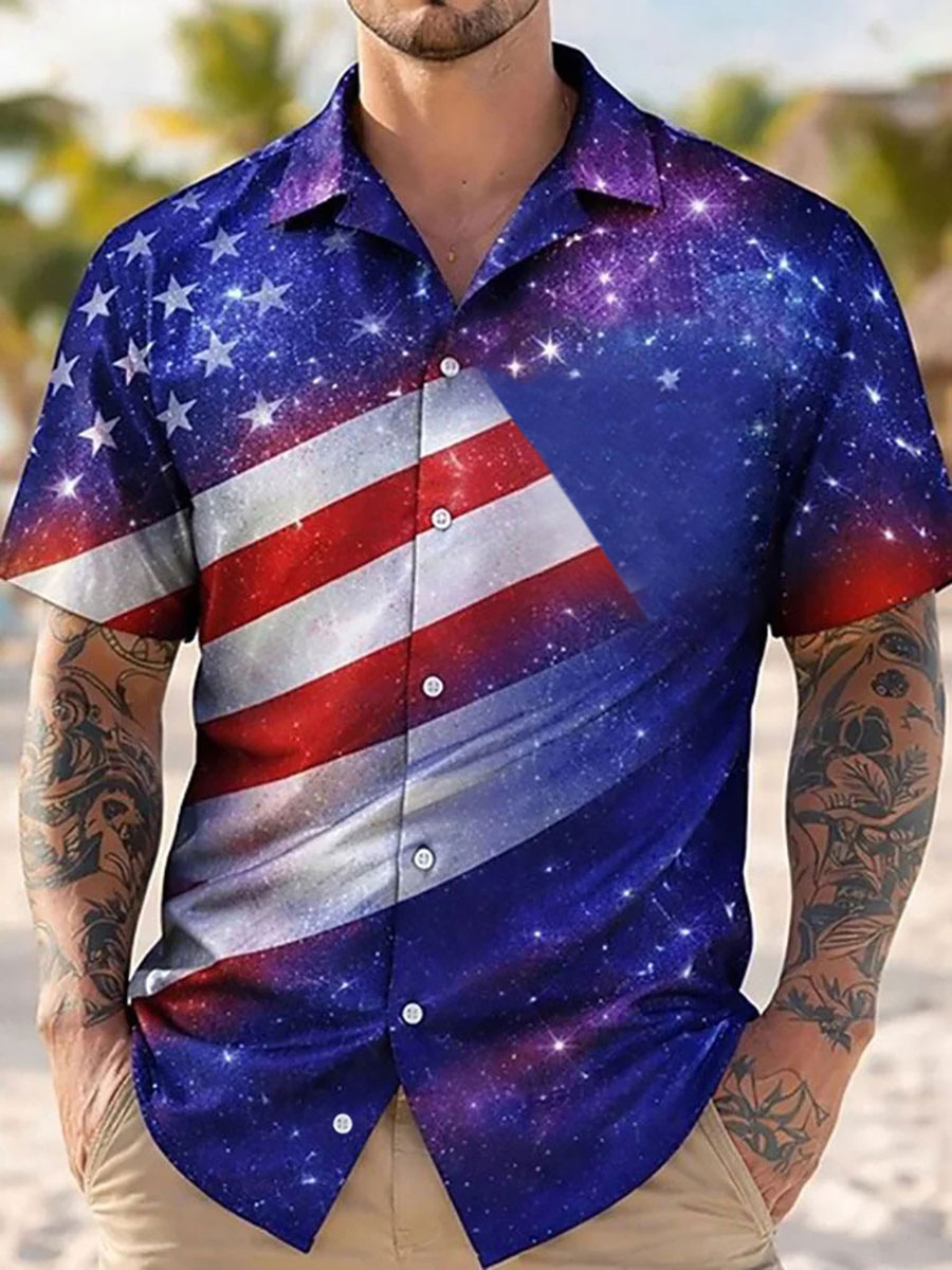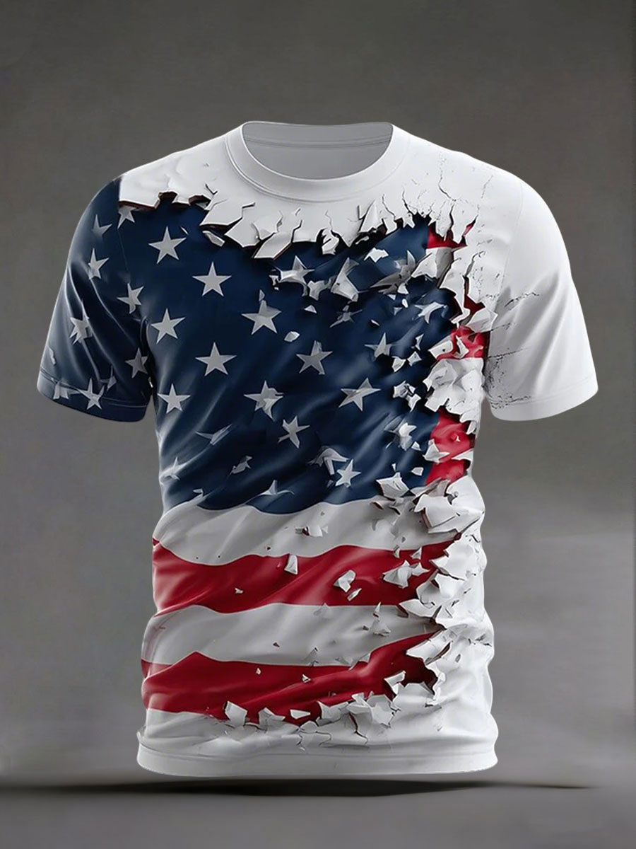 Men's American Flag Print Casual T-Shirt