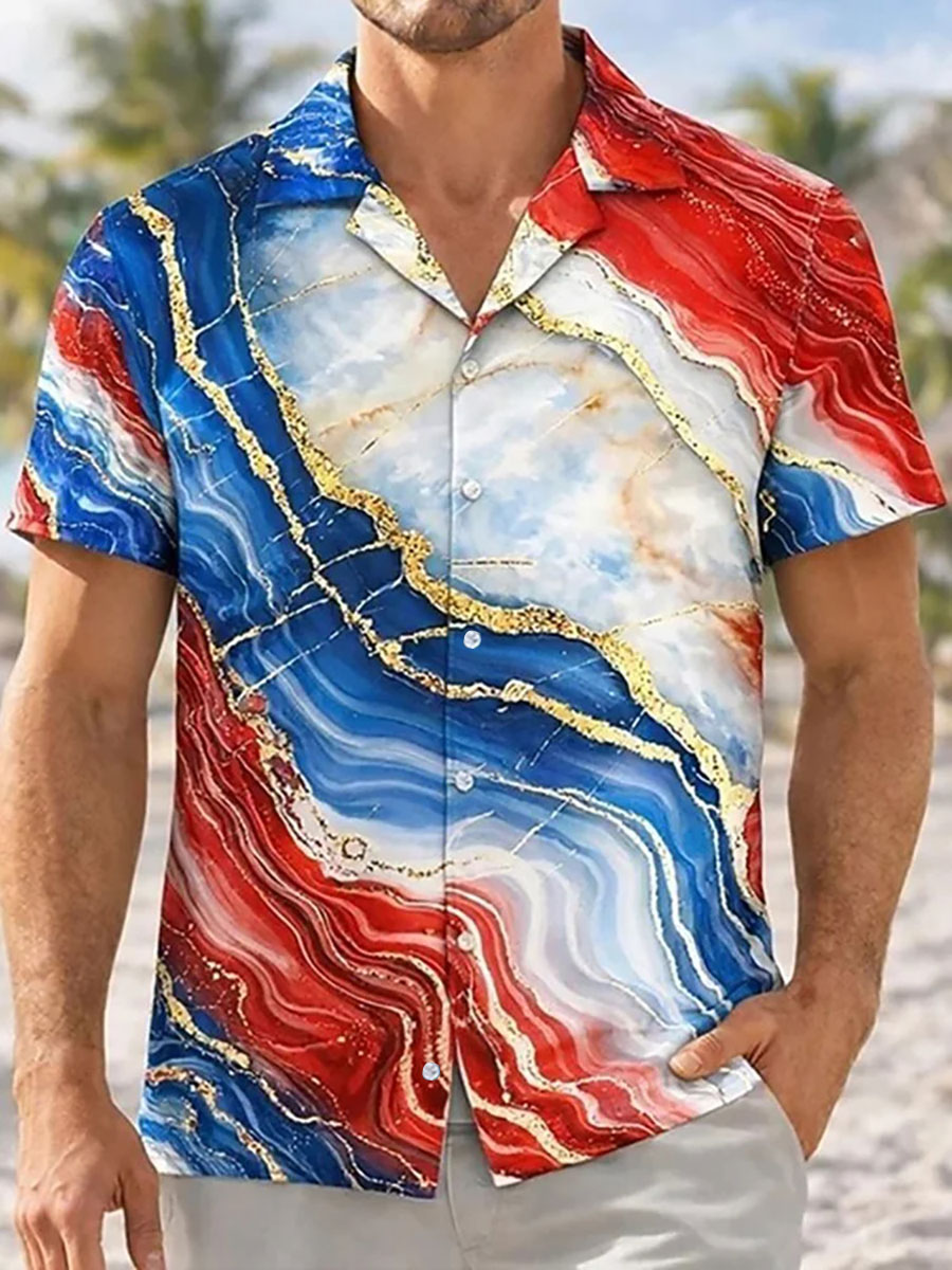 Men's USA Embroidery Pattern Patchwork Art Polo Shirt