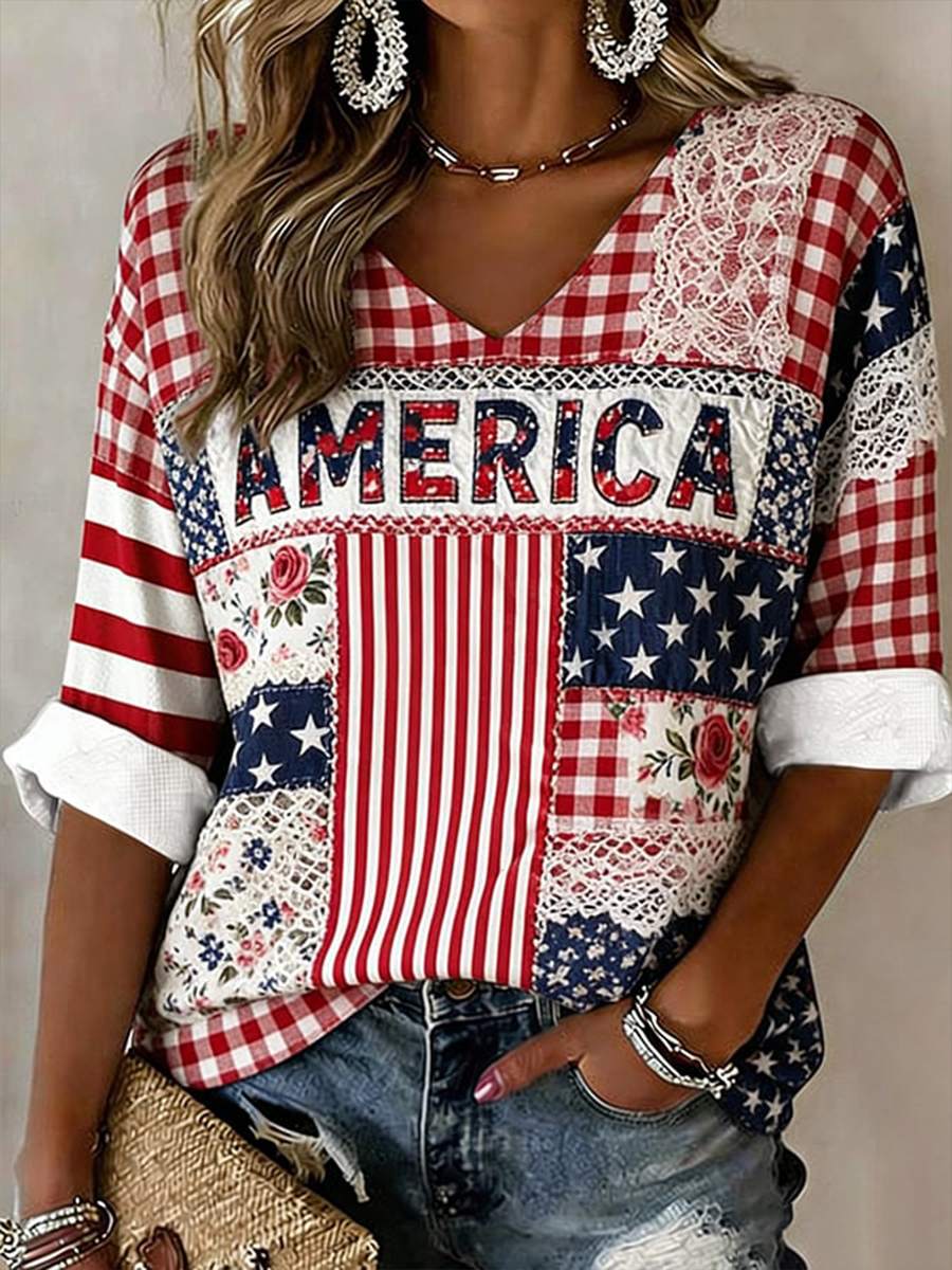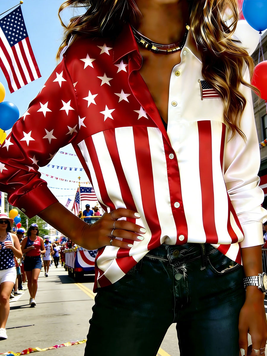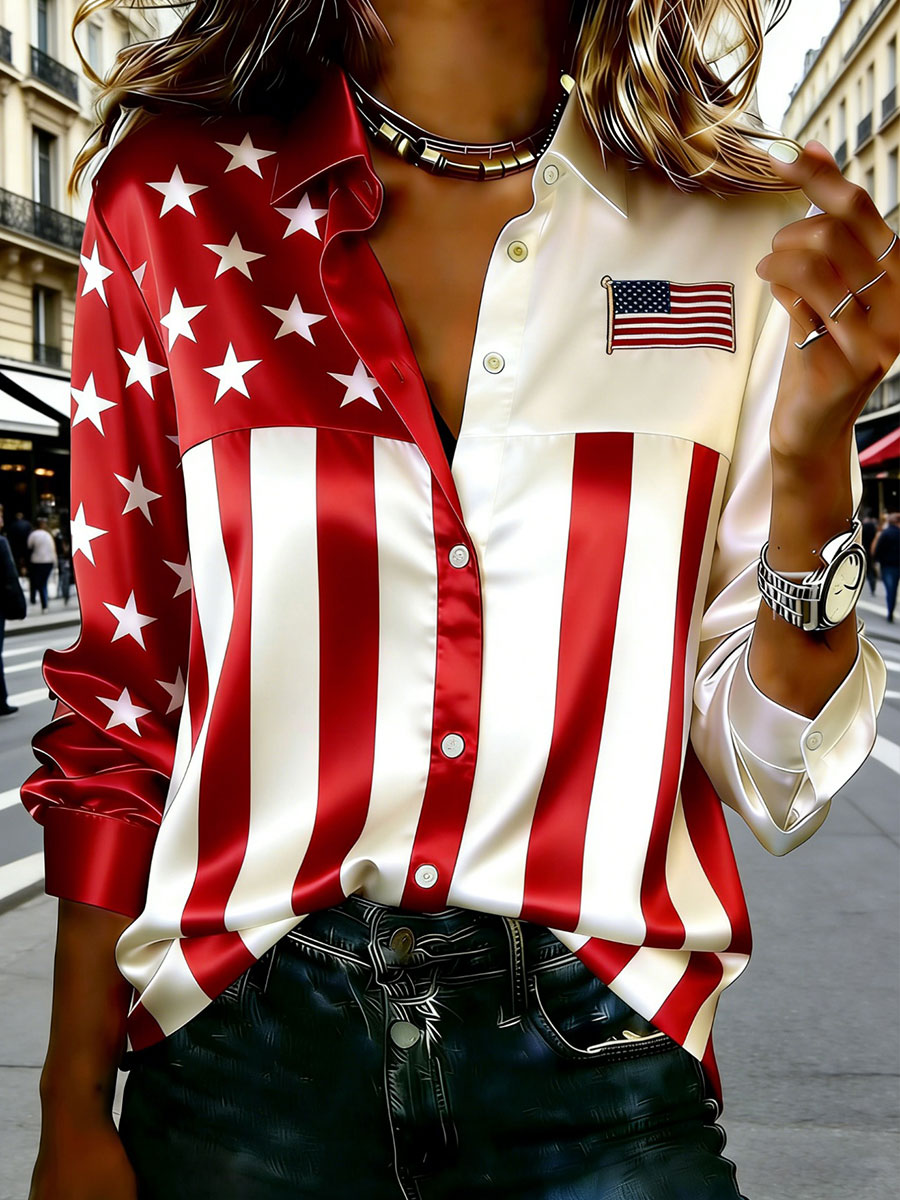 Women's USA Flag Tie-Dye Print Satin Shirts