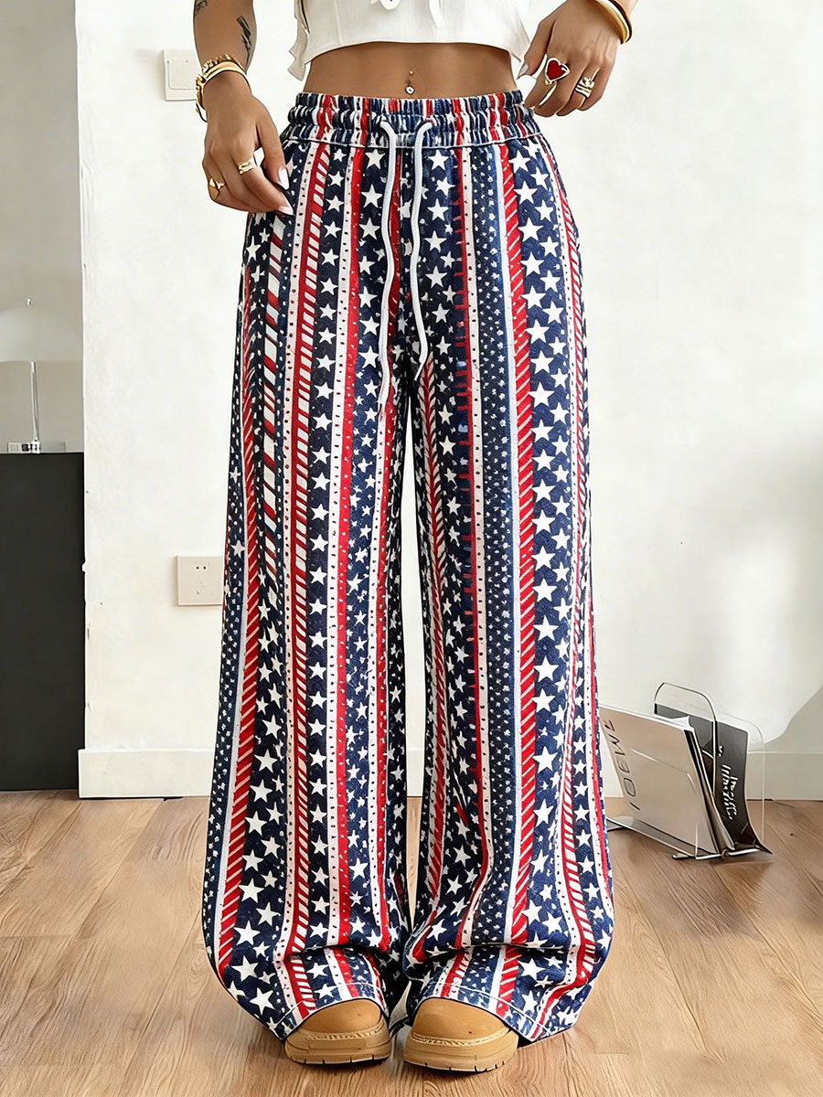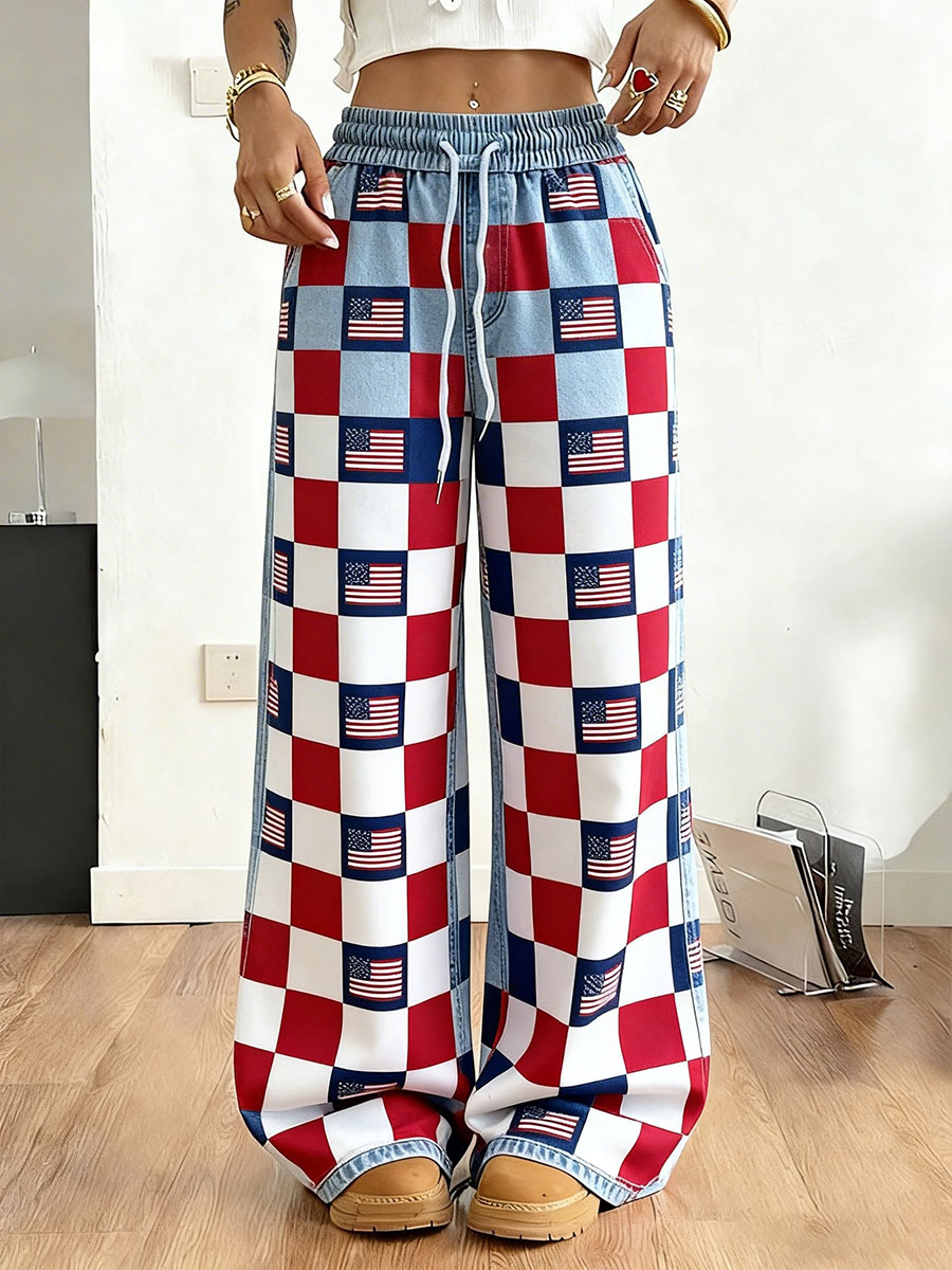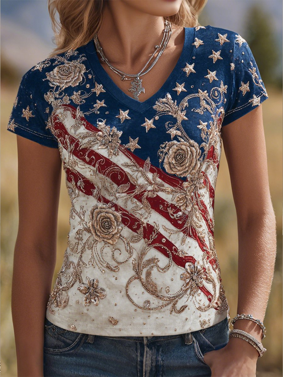 Women's USA Flag Tie-Dye Print Satin Shirts
