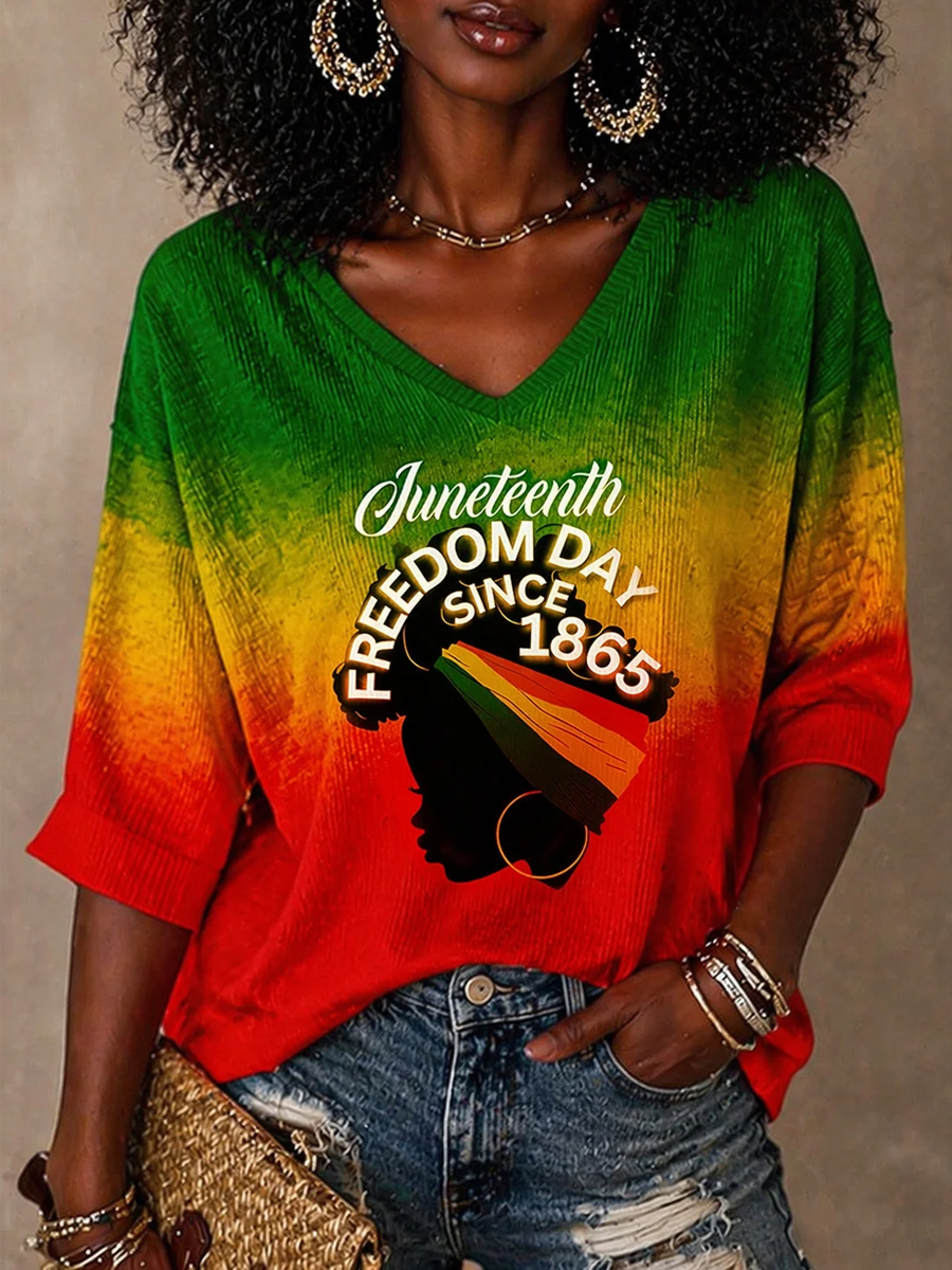 Women's Black Pride Celebrating Juneteenth V-Neck Shirt