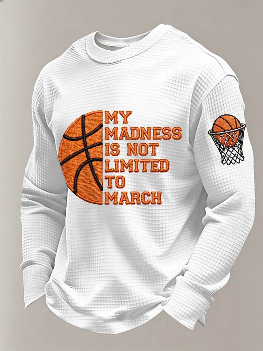 Men's My Madness Is Not Limited To March Print March Madness Basketball Lovers Casual Waffle Long Sleeve T-Shirt