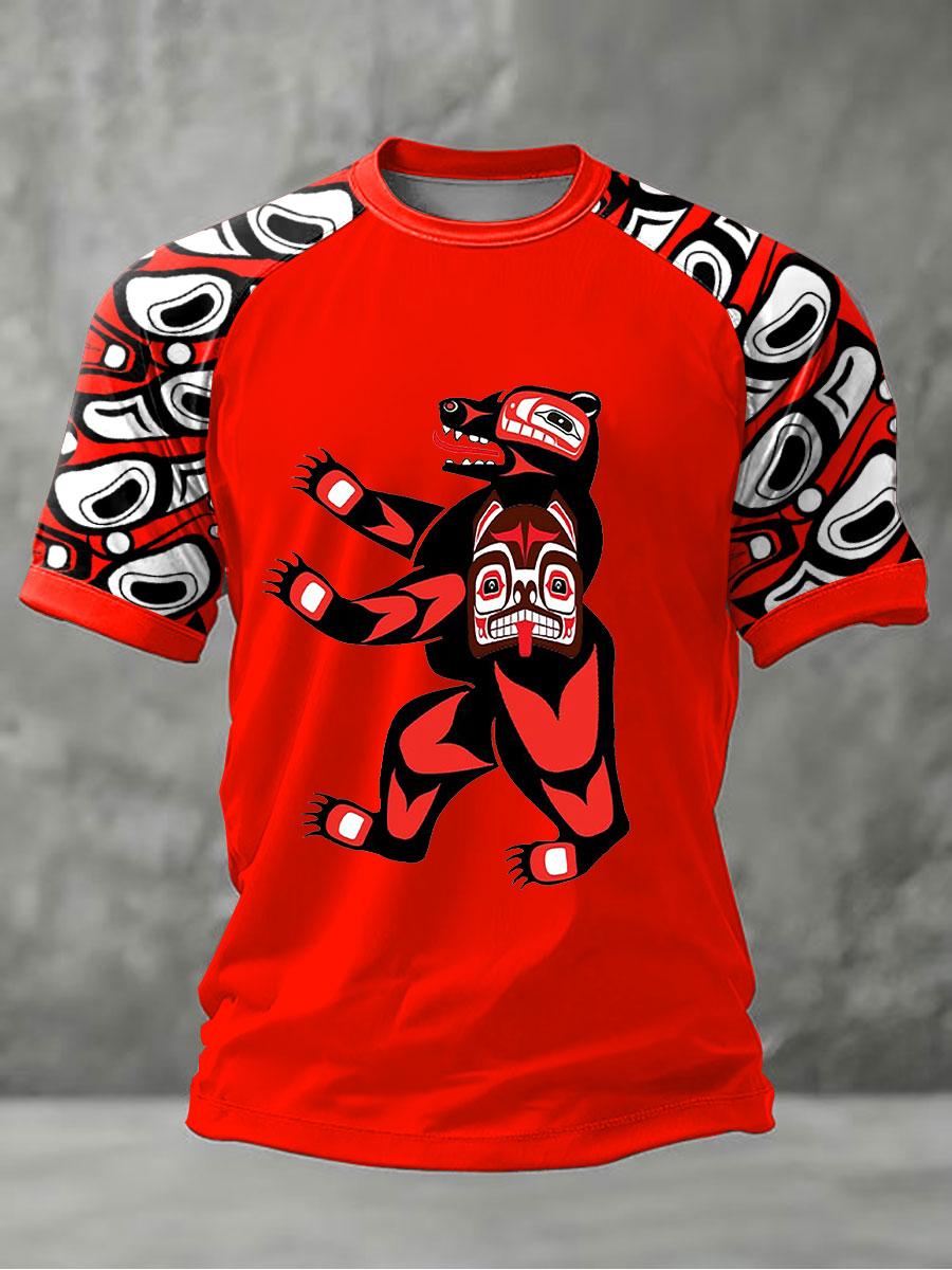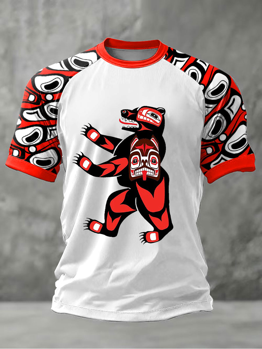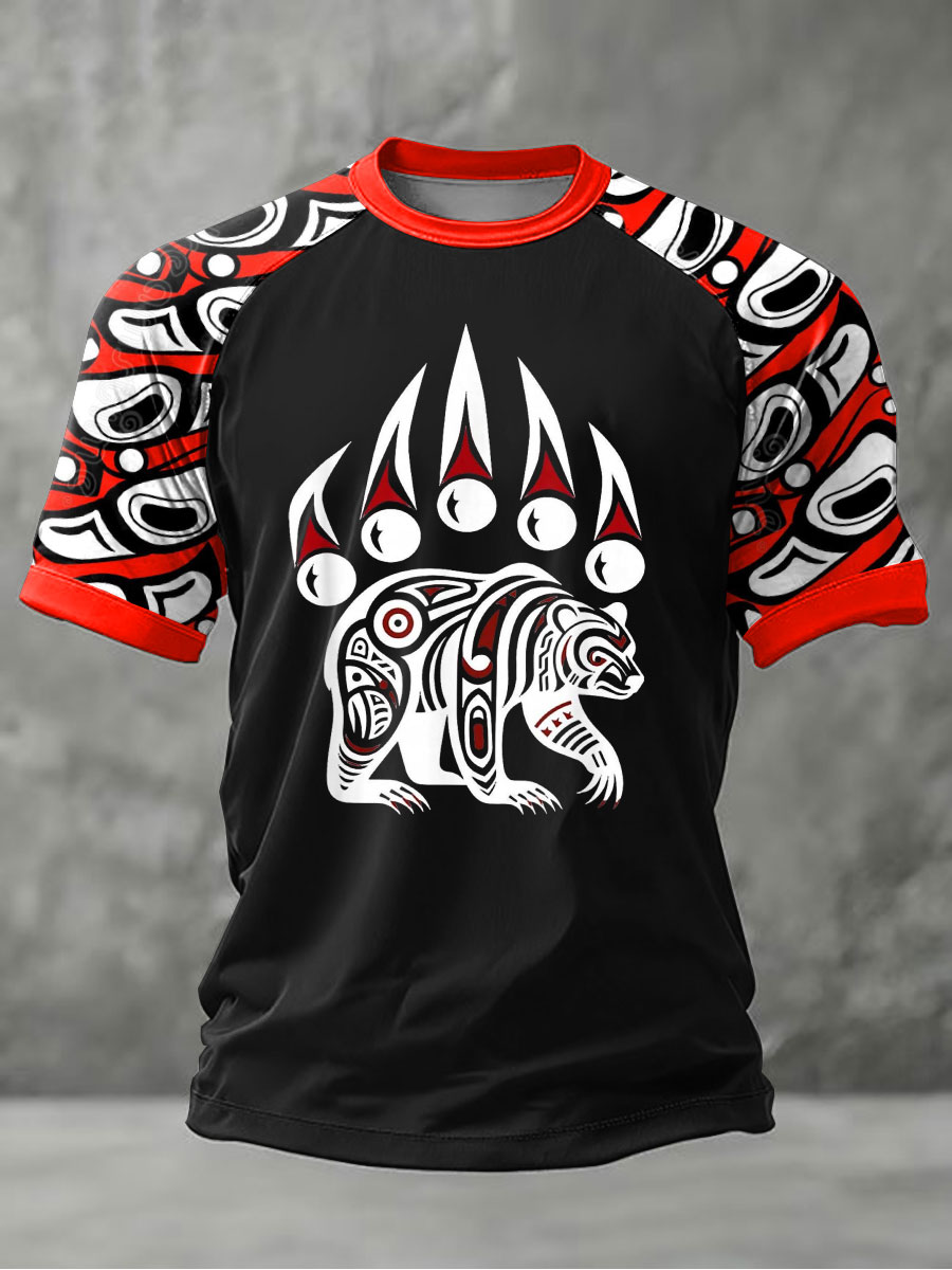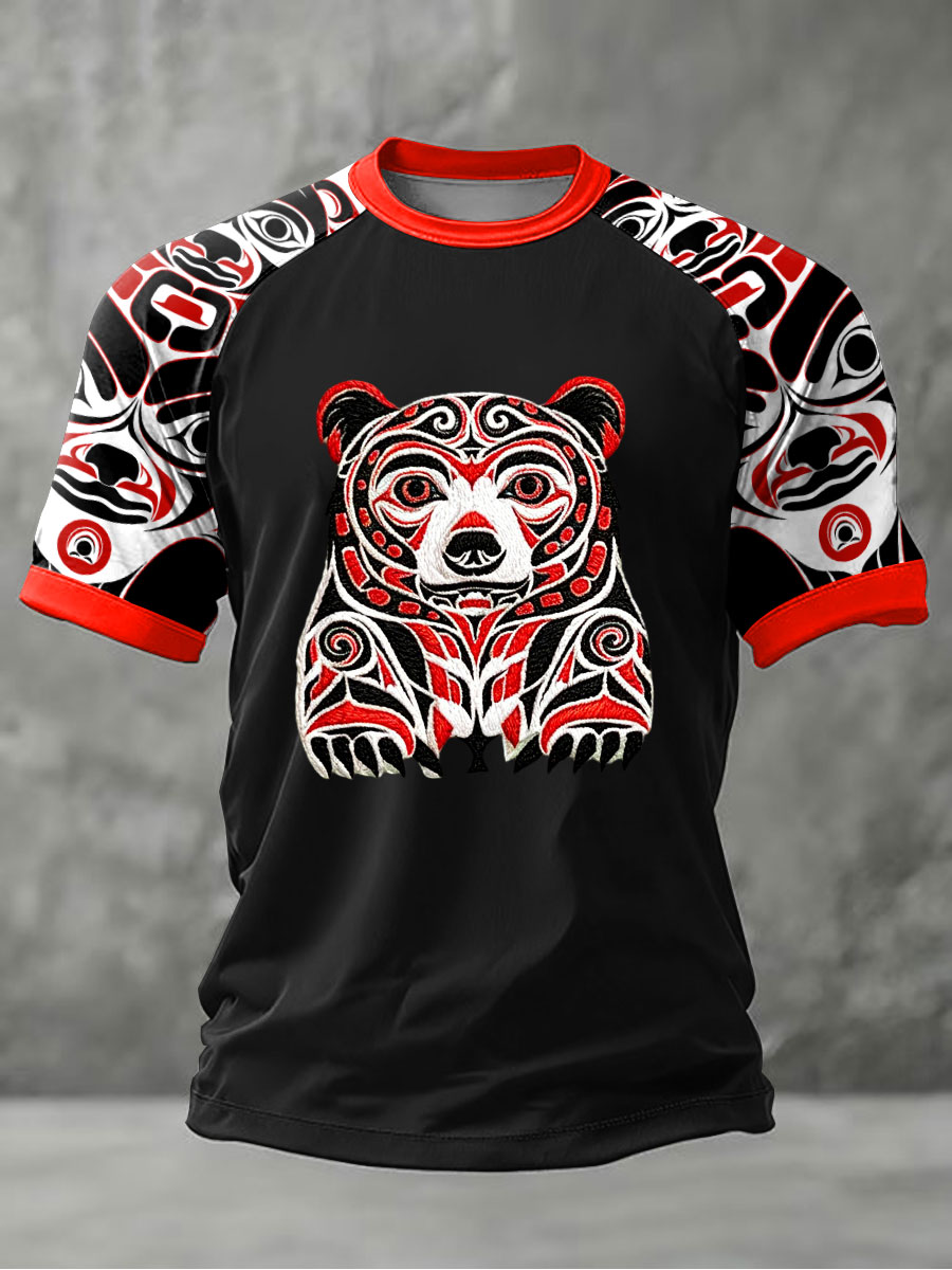 Men's Indigenous Bear Art Casual T-shirt