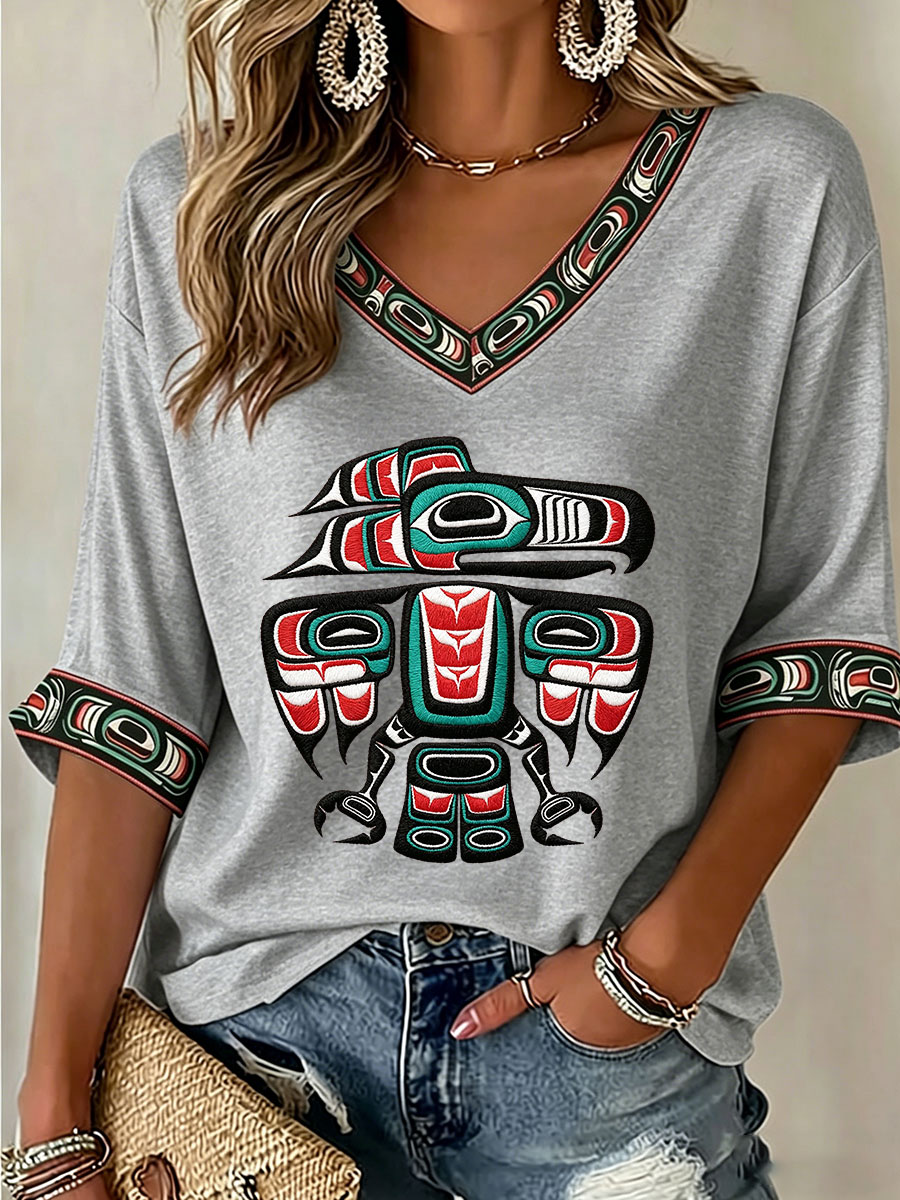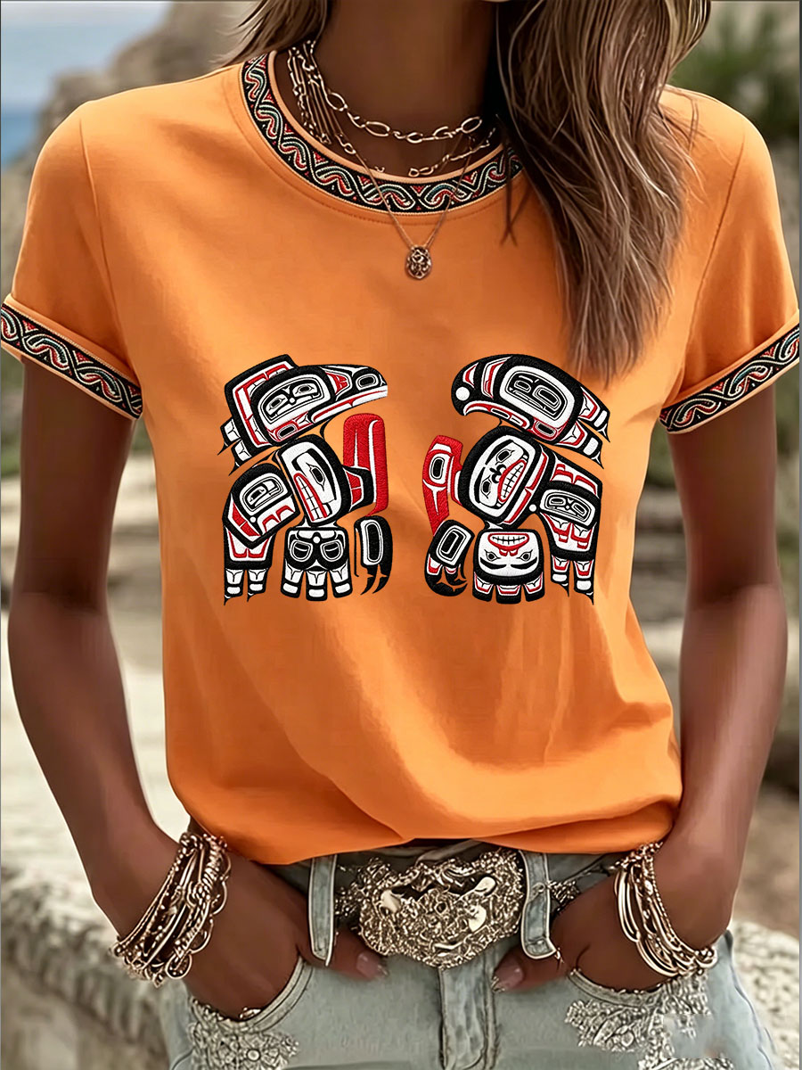 Women's Indigenous Totem Art Casual T-shirt