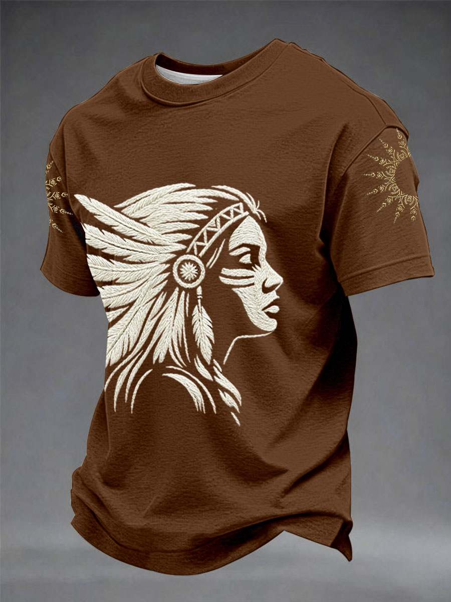 Men's Indigenous Totem Art Print Casual T-Shirt