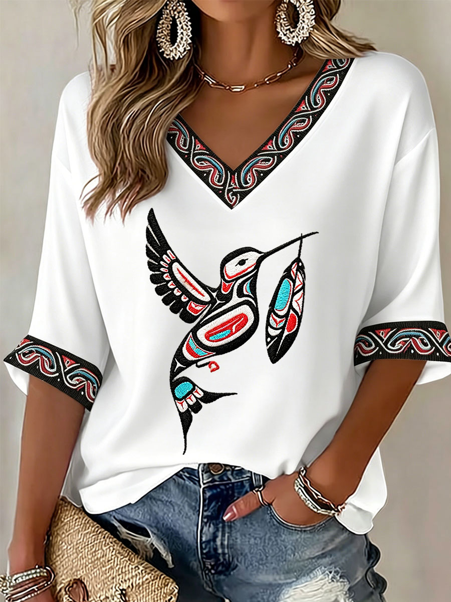 Women's Indigenous Print Casual T-Shirt