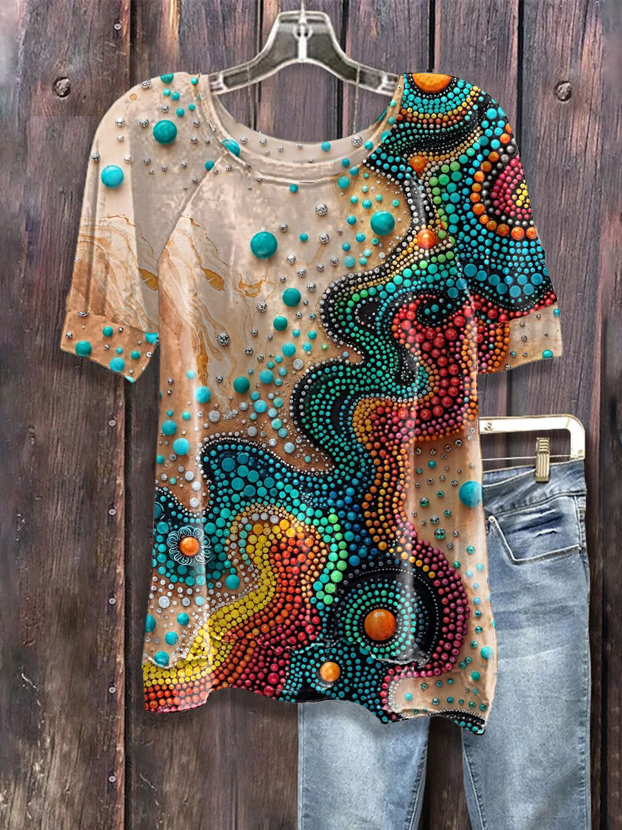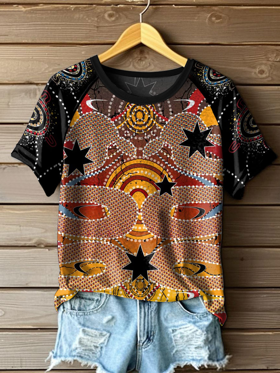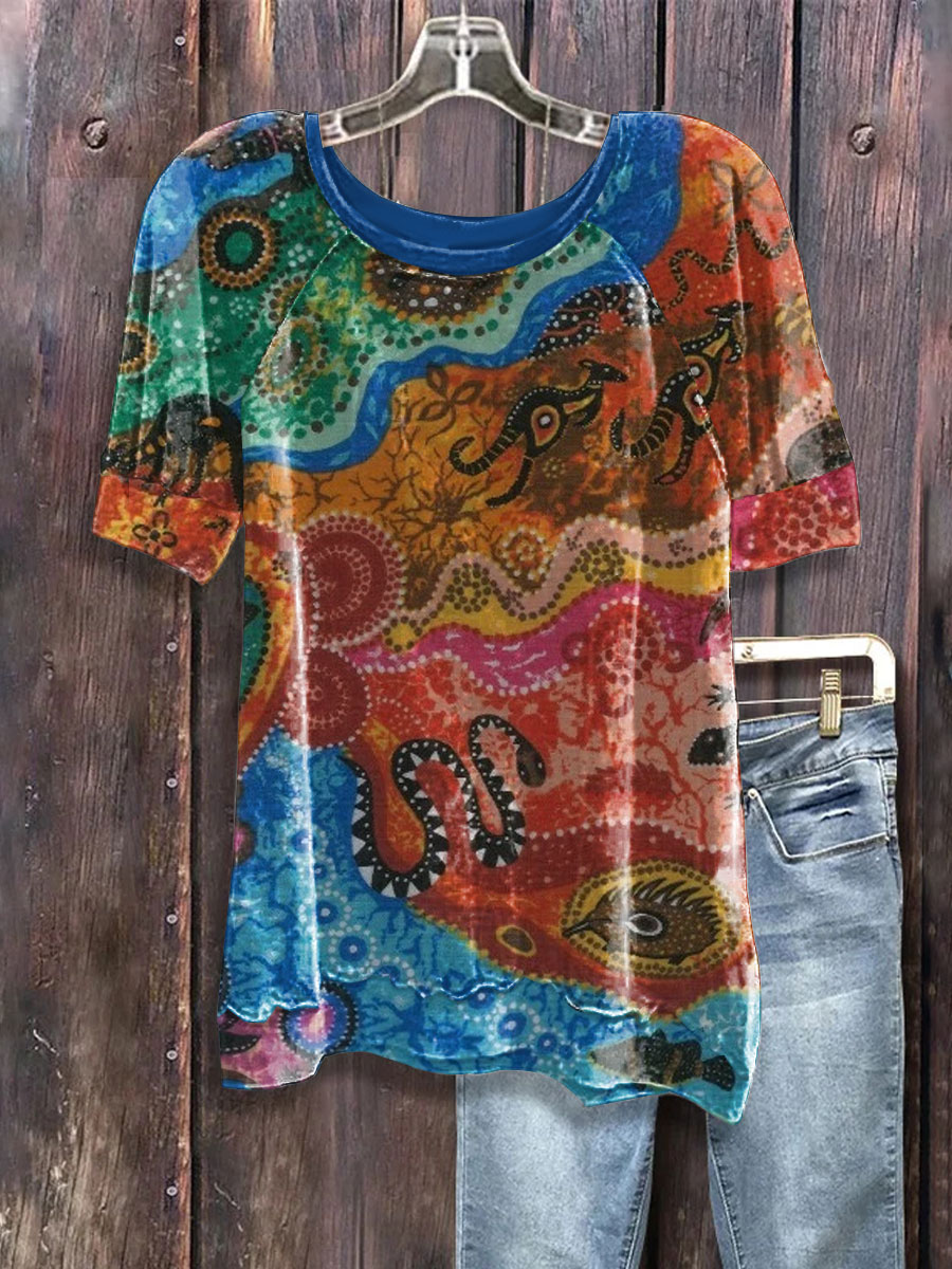 Women's Aboriginal River Art Print Casual T-shirts