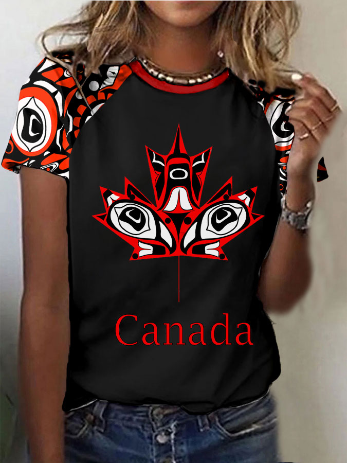 Women's Indigenous Inspired Print V-Neck T-Shirt