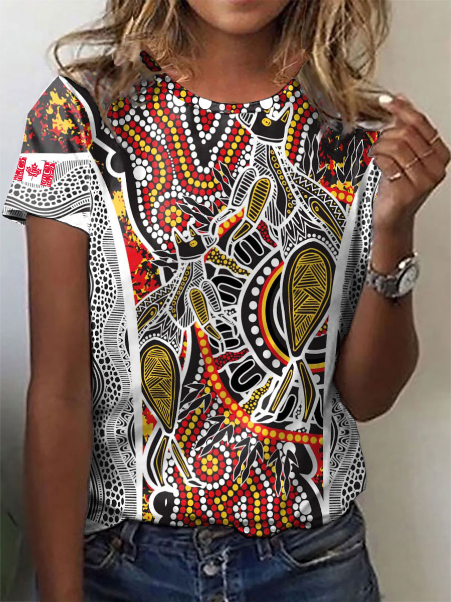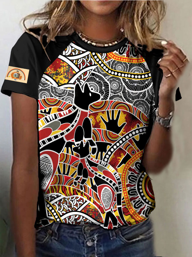 Women's Aboriginal animals art print casual t-shirts