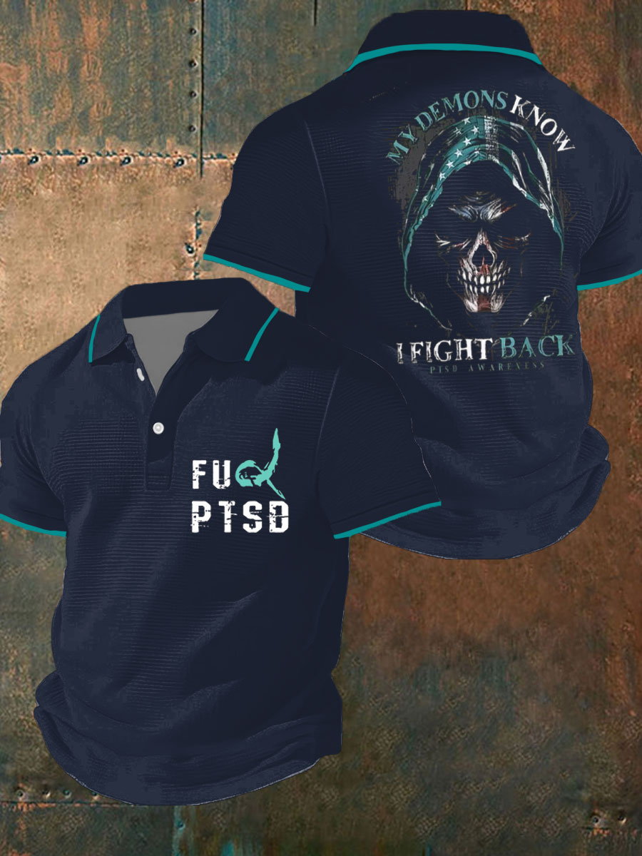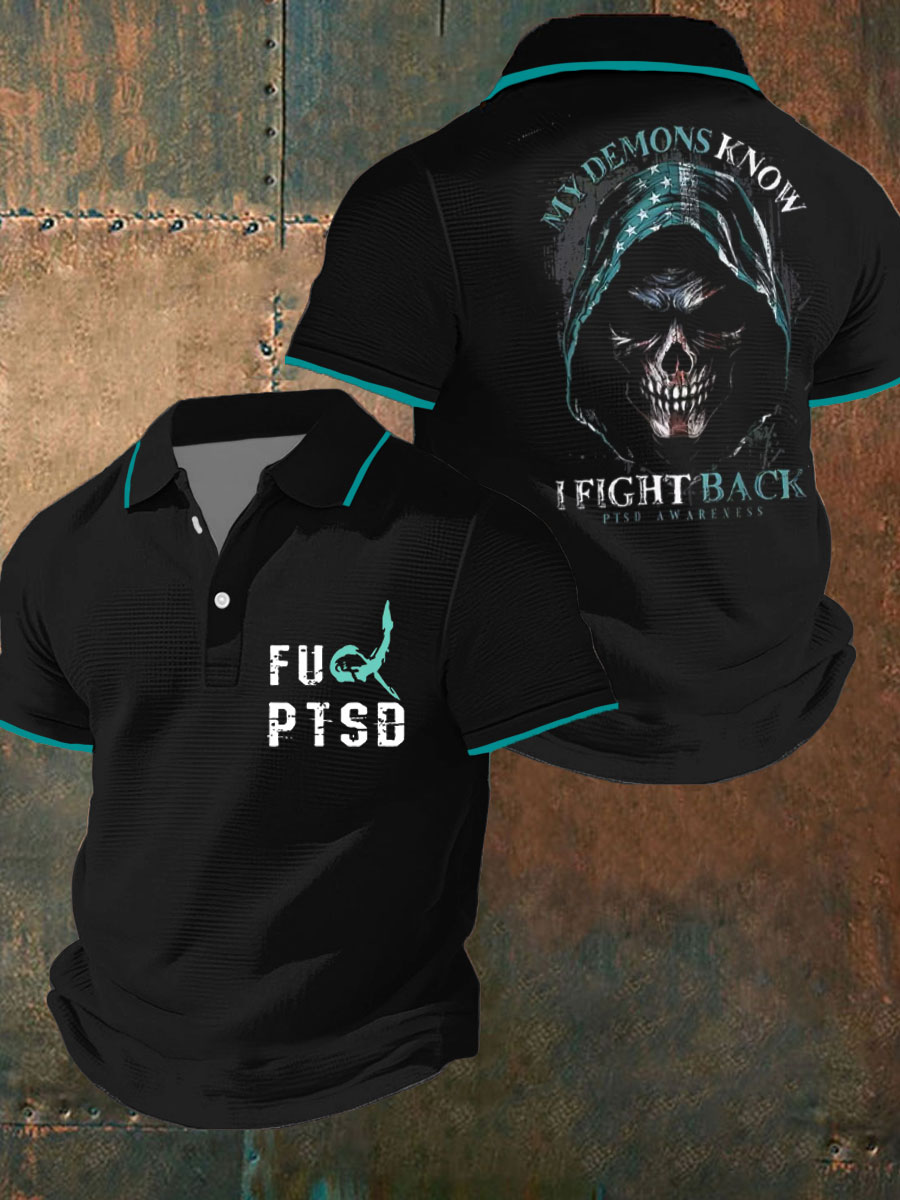 Men's PTSD Awareness Veteran Printed Waffle Casual Tops
