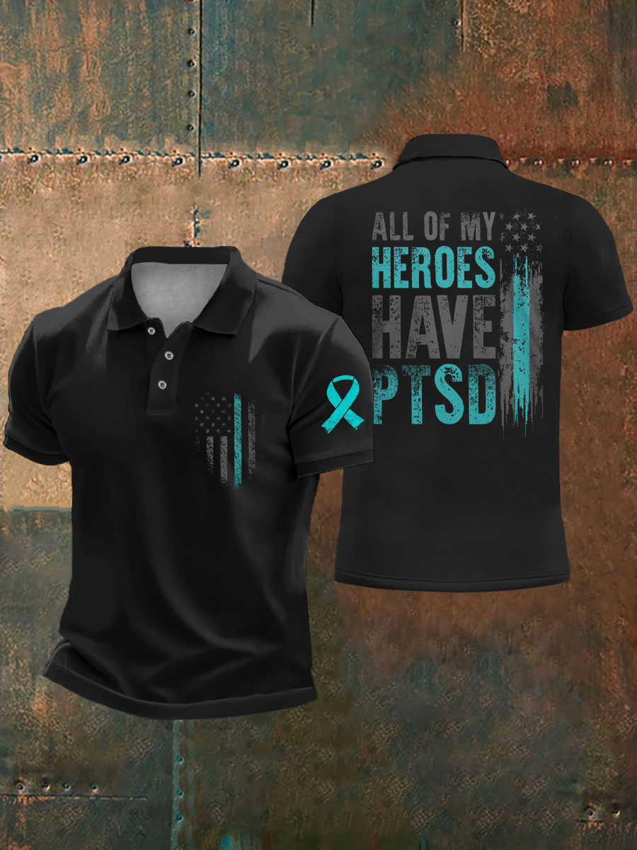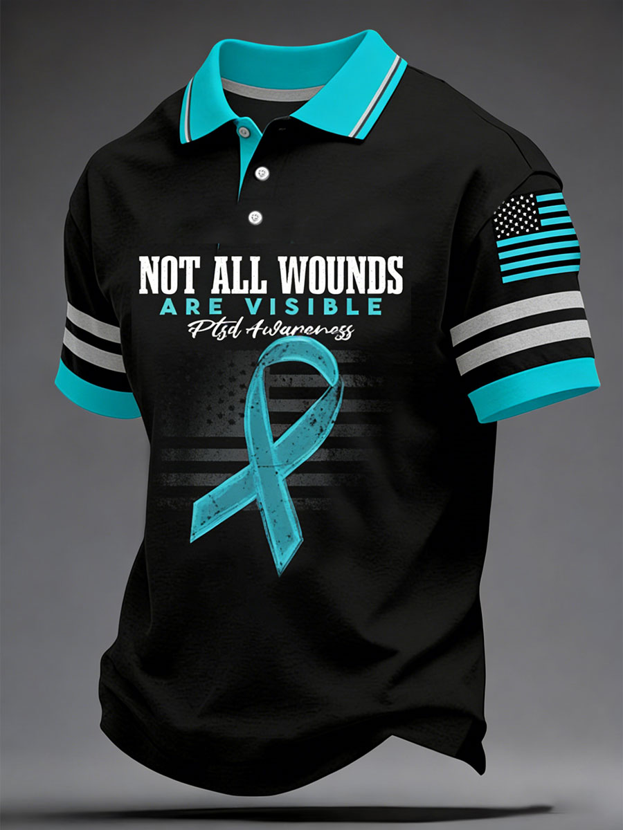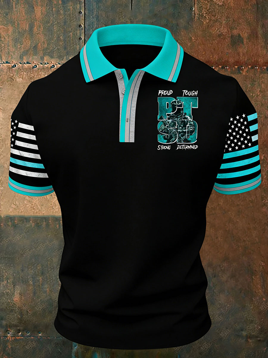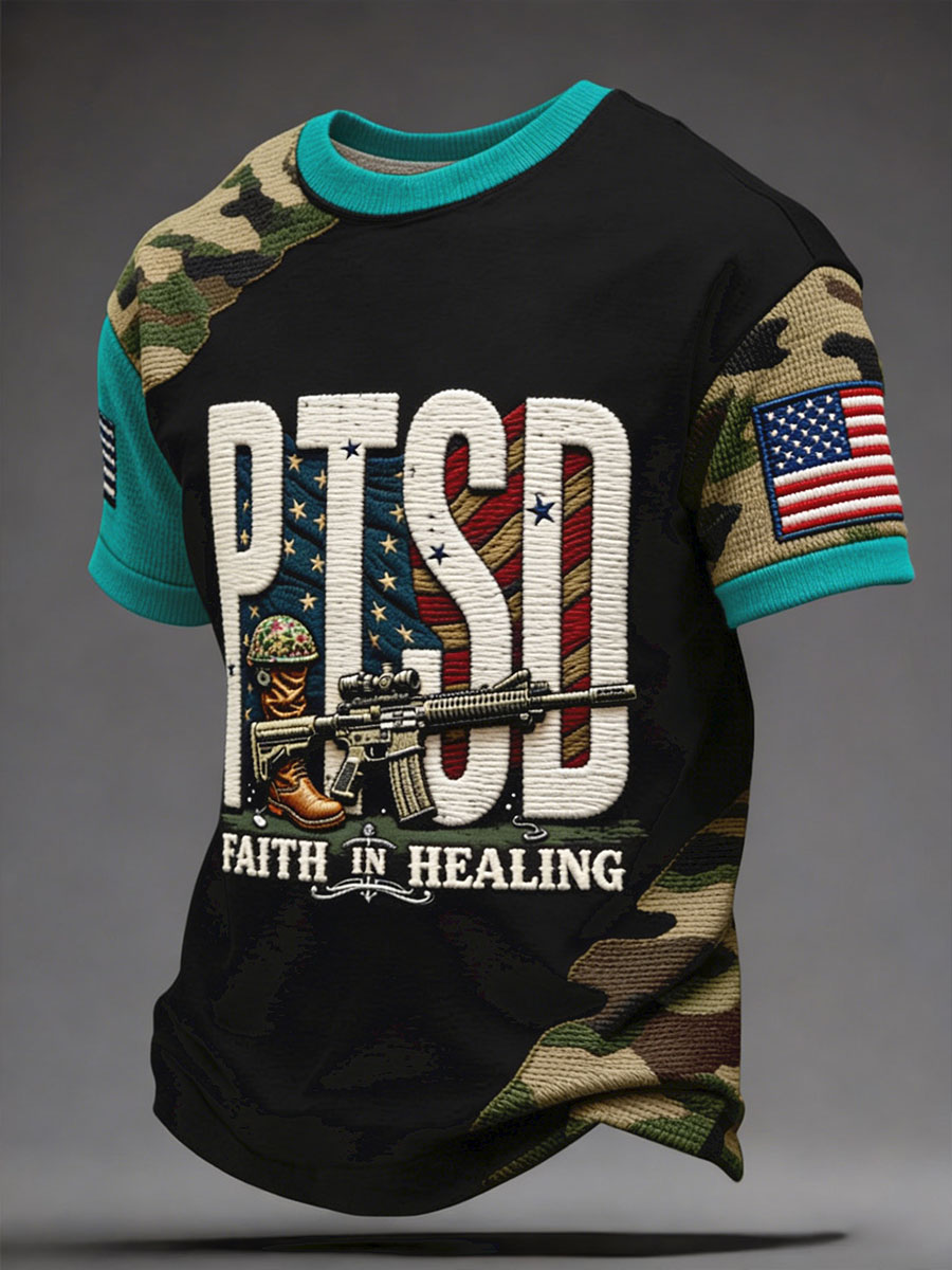Men's PTSD Awareness Veteran Printed Casual Tops