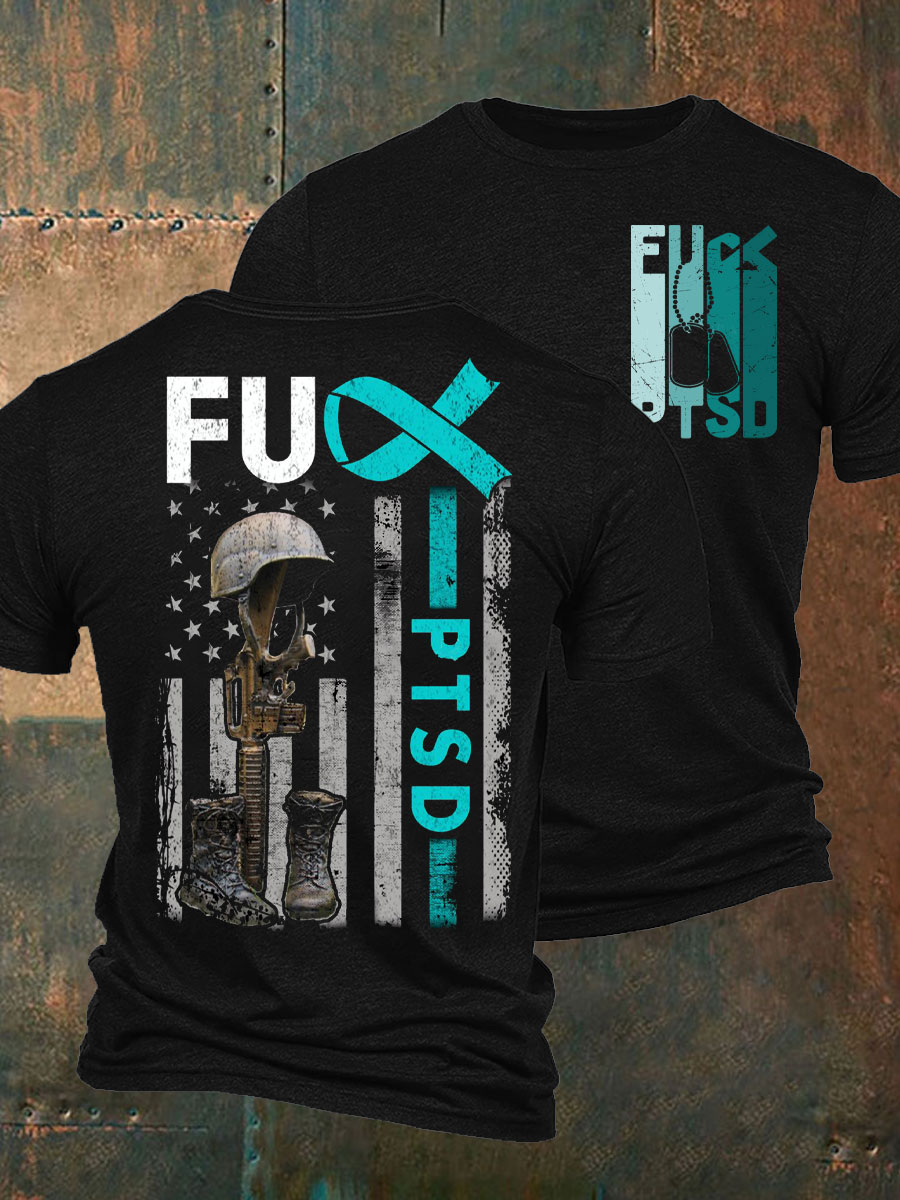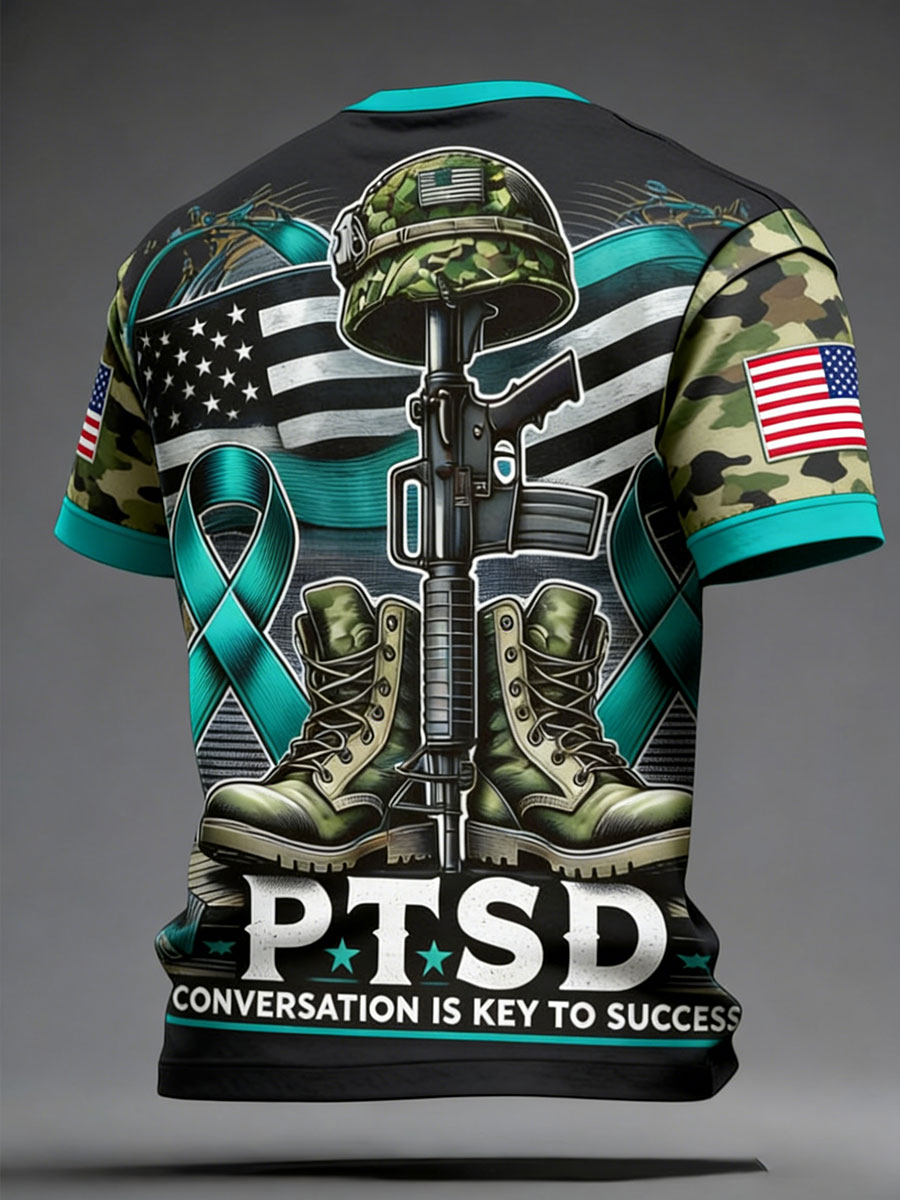 Men's PTSD Awareness Veteran Printed T-Shirt