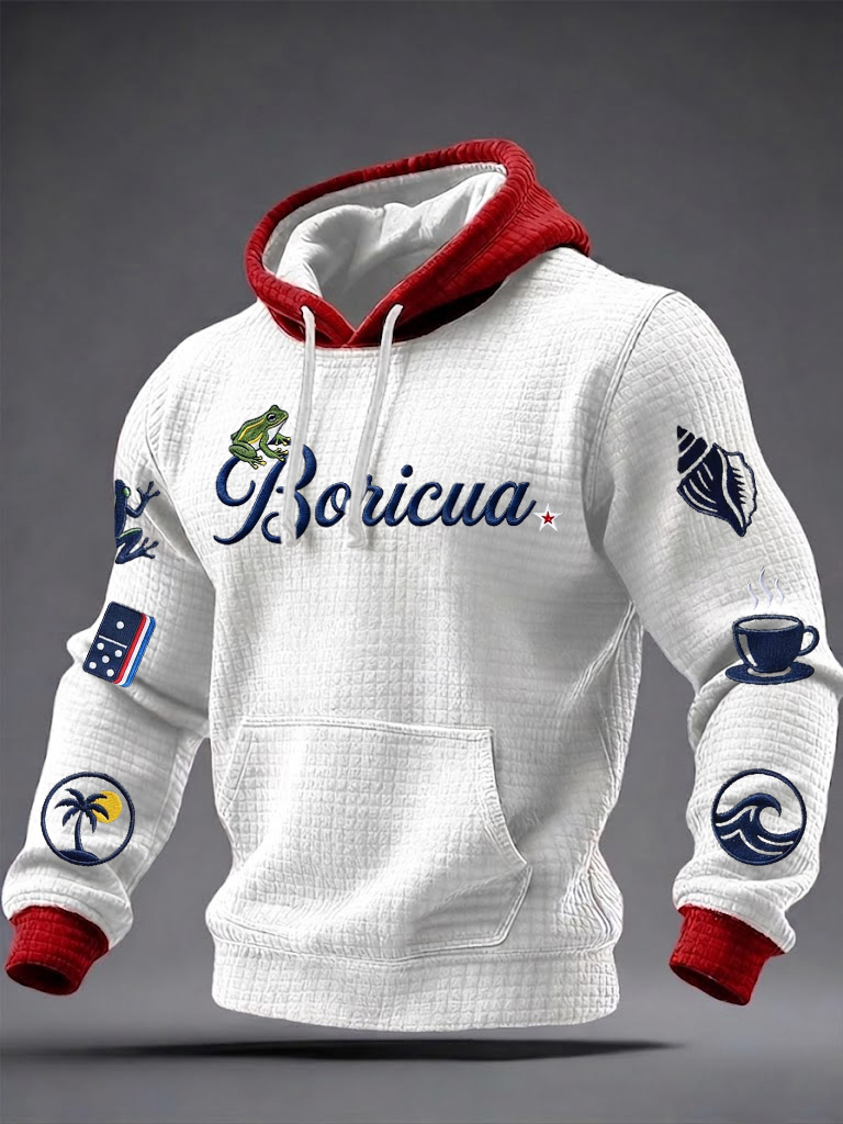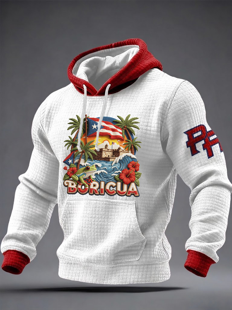 Men's Puerto Rico Printed Checkered Cotton Hoodie