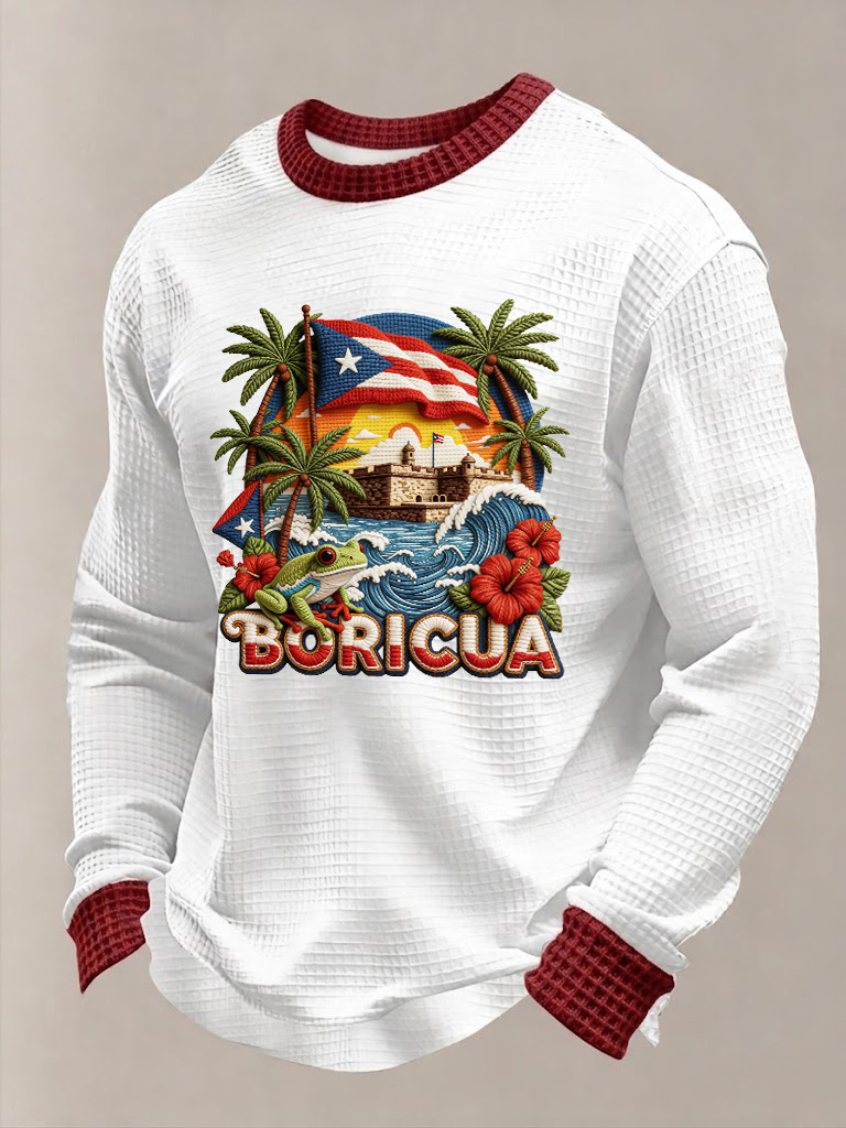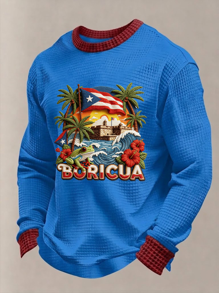 Men's Puerto Rico Printed Waffle Long Sleeve Sweatshirt