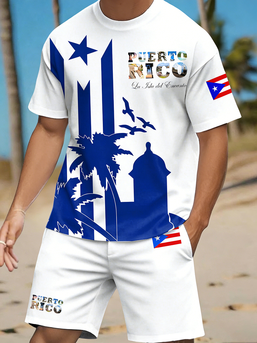 Men's Puerto Rico Print Vacation T-shirt And Shorts Set