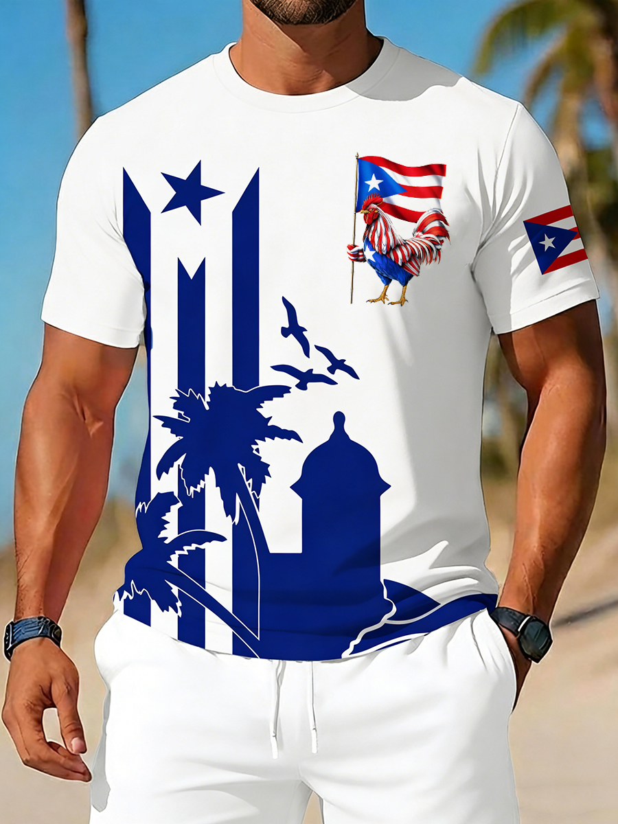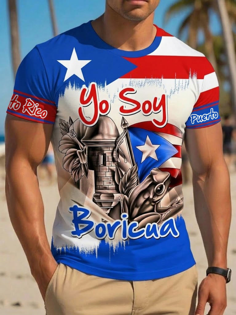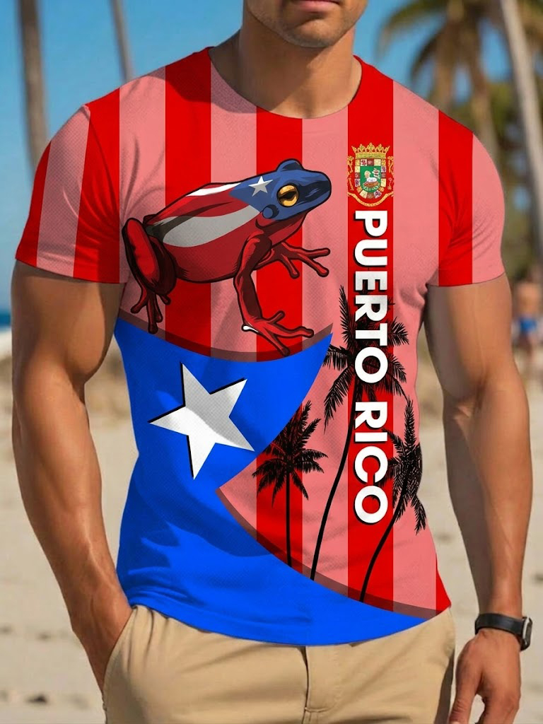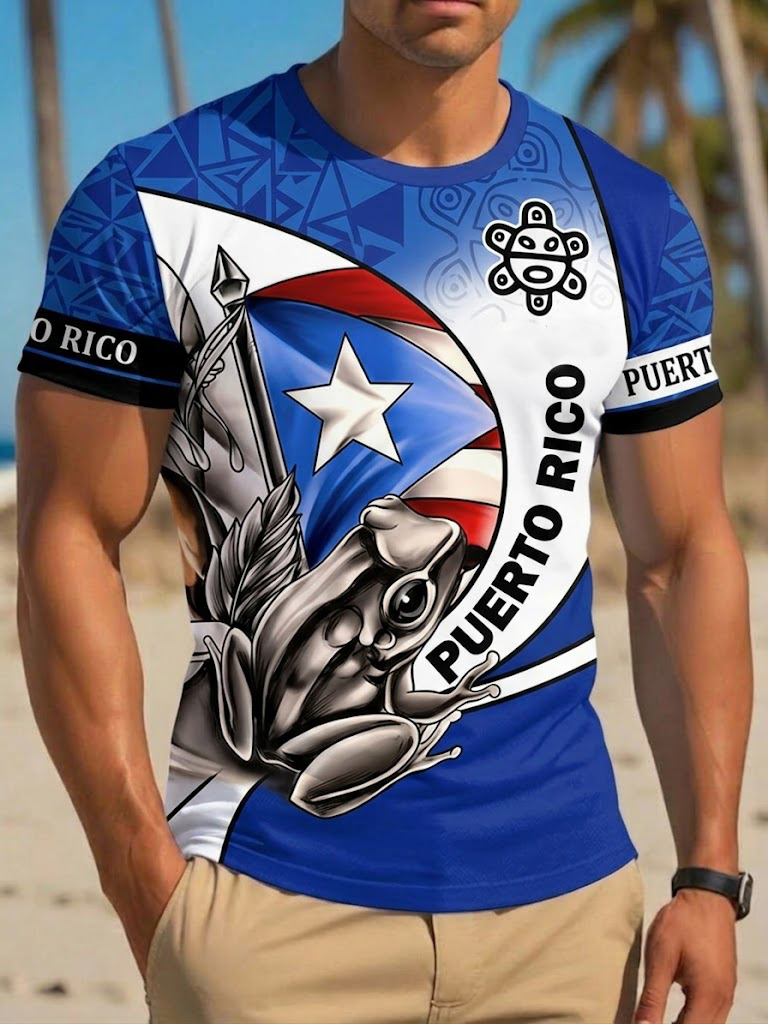 Men's Puerto Rico Print Short Sleeves T-shirt