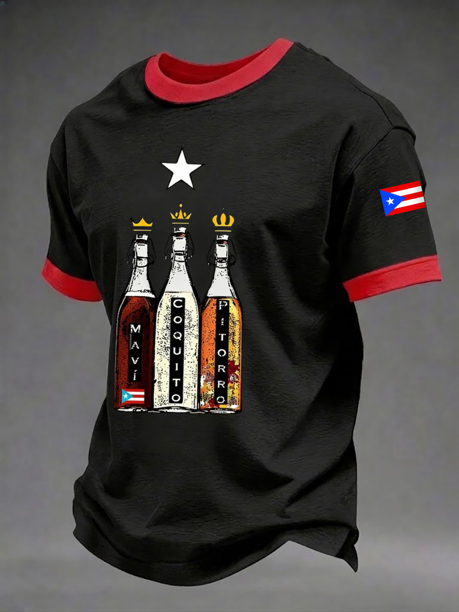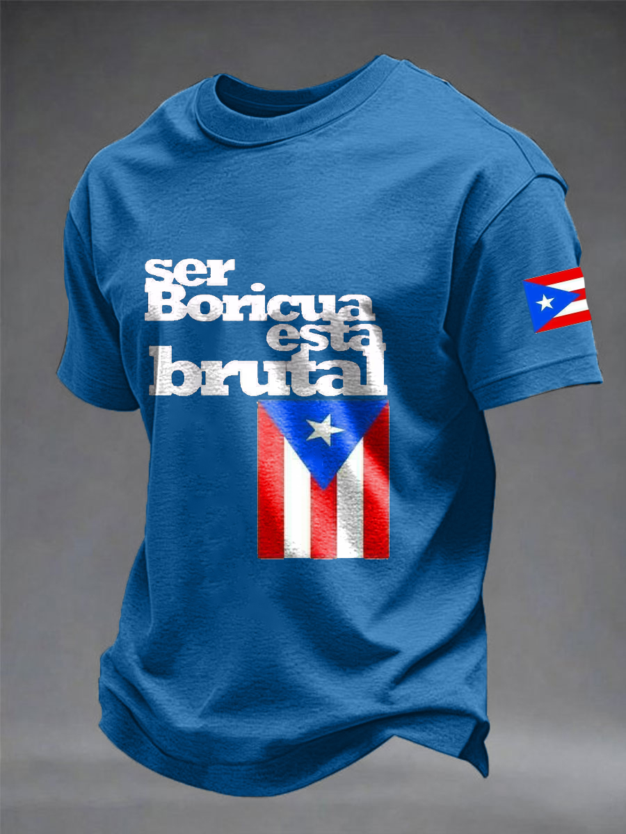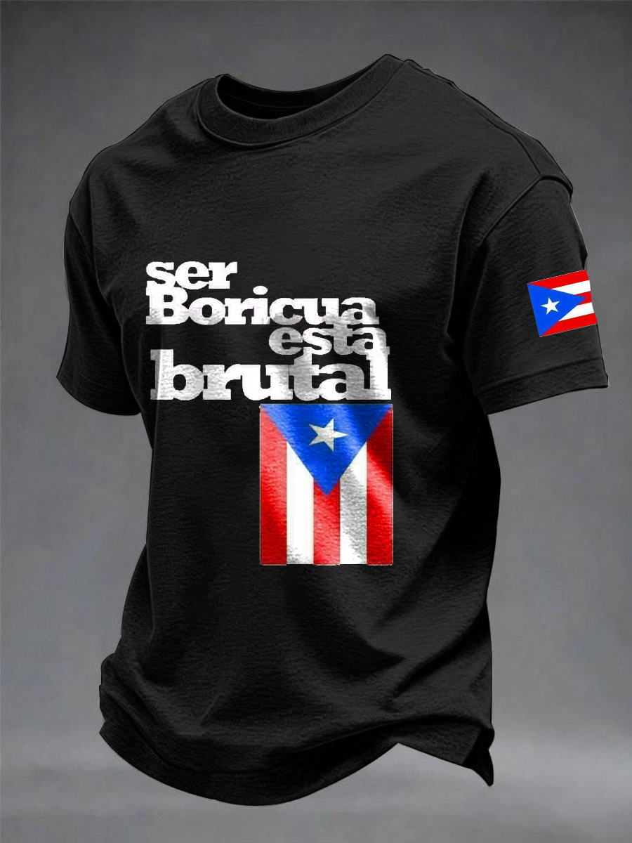 Men's Puerto Rico Printed imitation cotton short-sleeved T-shirt