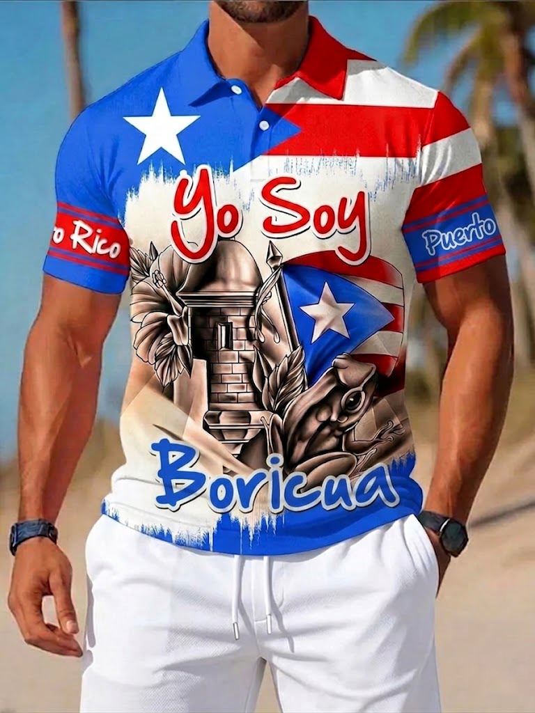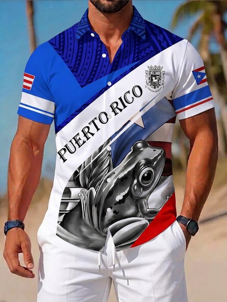 Men's Puerto Rico Print Vacation Top And Shorts Set