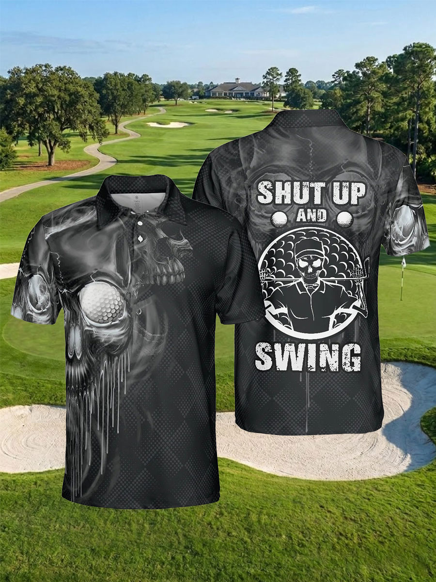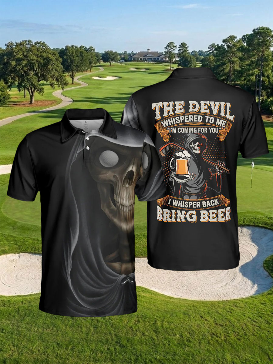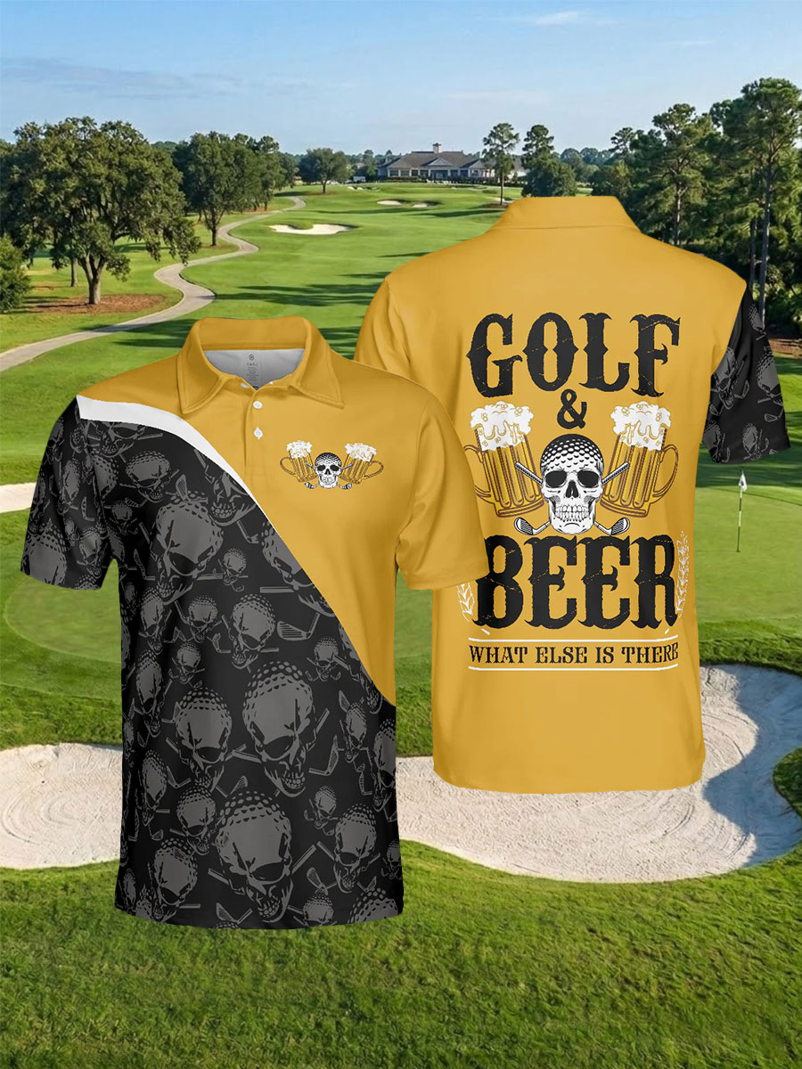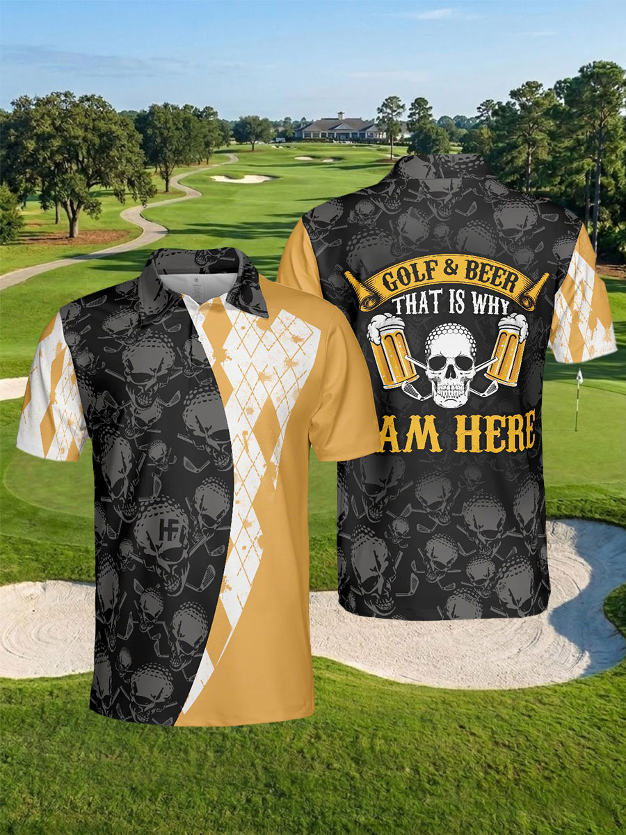 Men's Golf & Beer That Is Why I Am Here Skull Printed Shirt