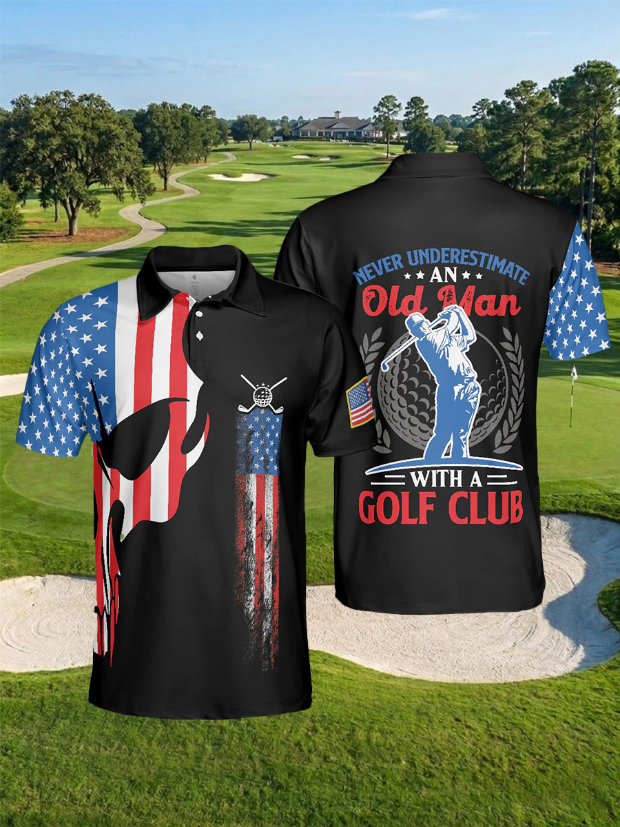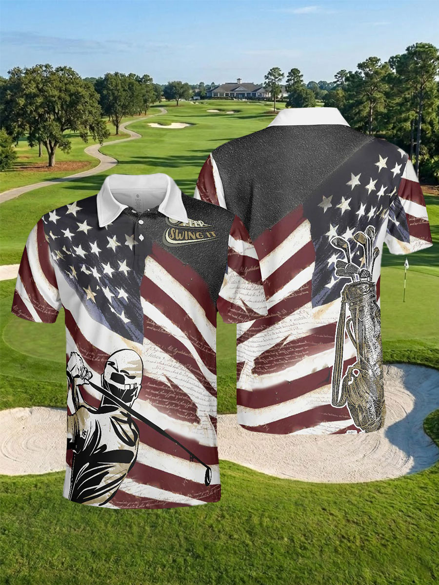 Men's Keep Swing It American Flag Golf Club Printed Shirt