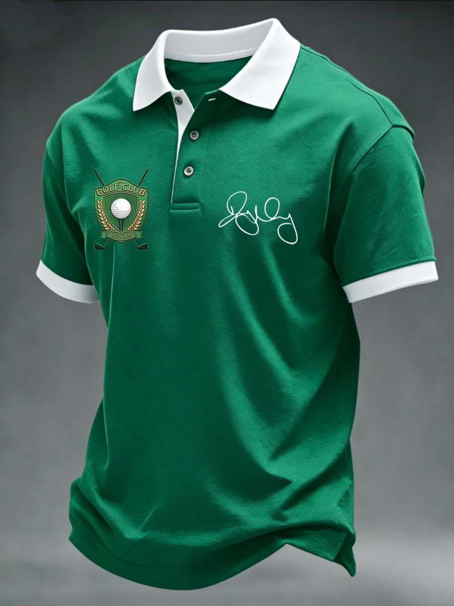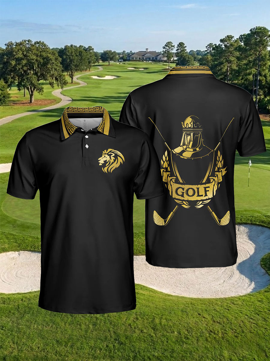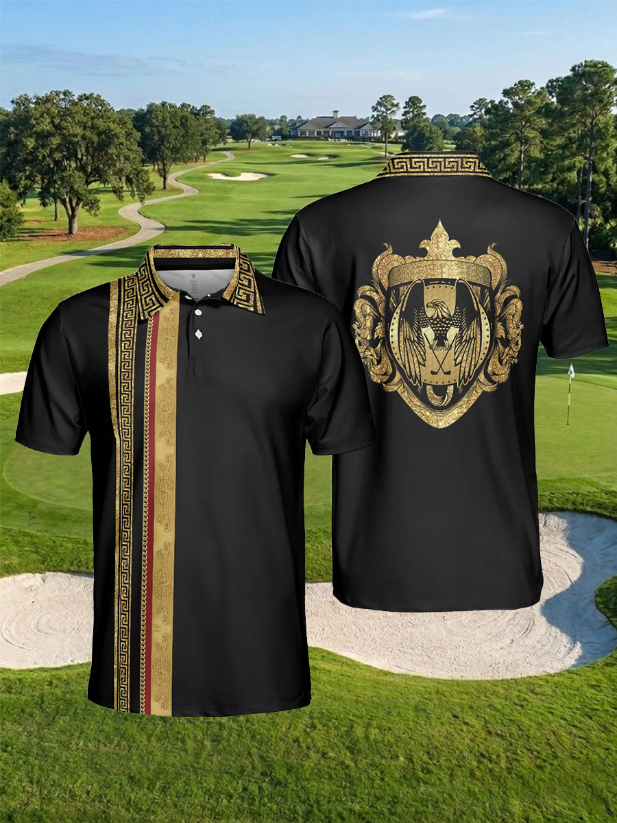 Men's Luxury Baroque Pattern Eagle Badge Golf Printed Shirt