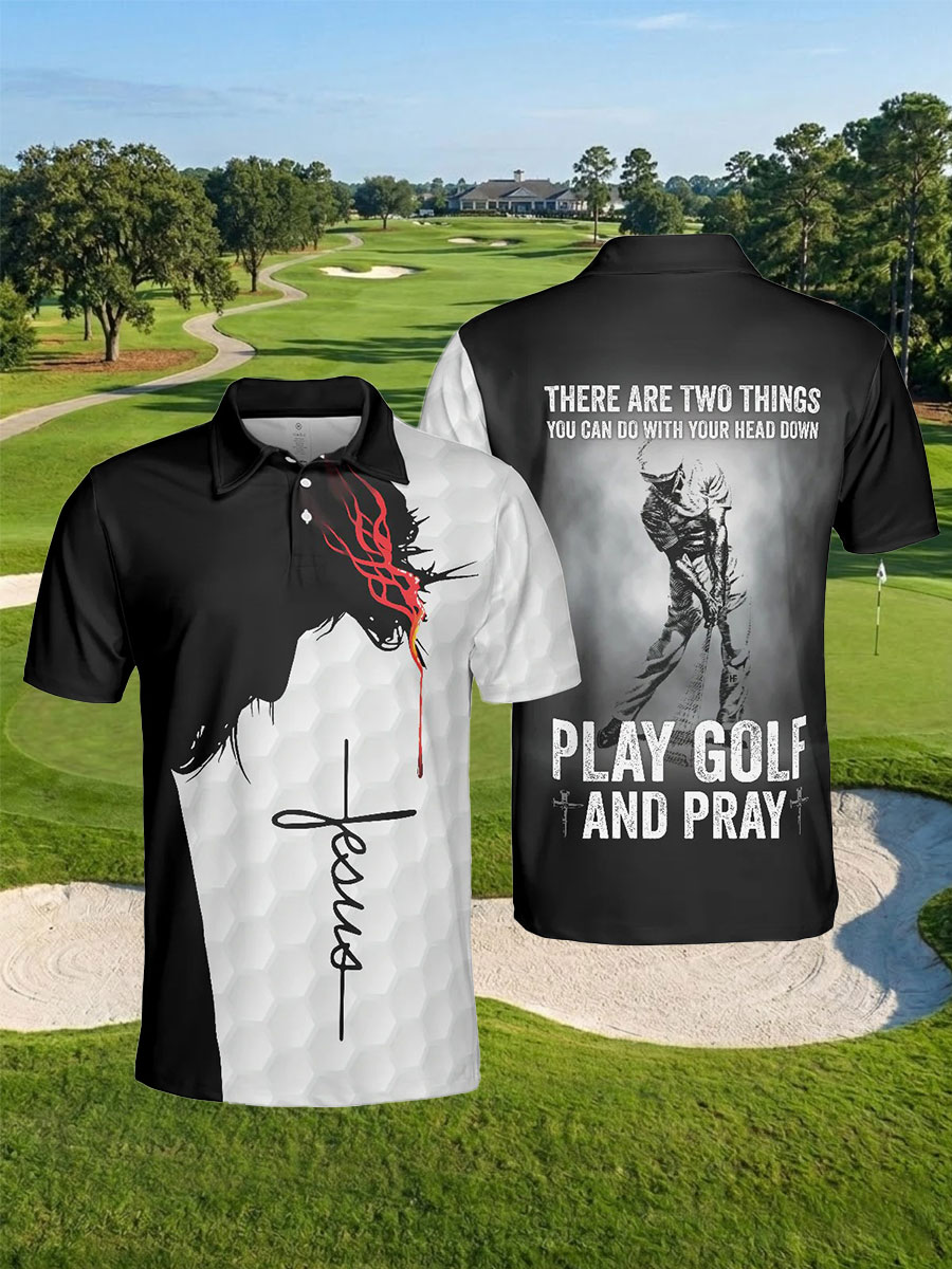 Men's My Head Down When Play Golf And Pray Christian Love Golf Printed Shirt