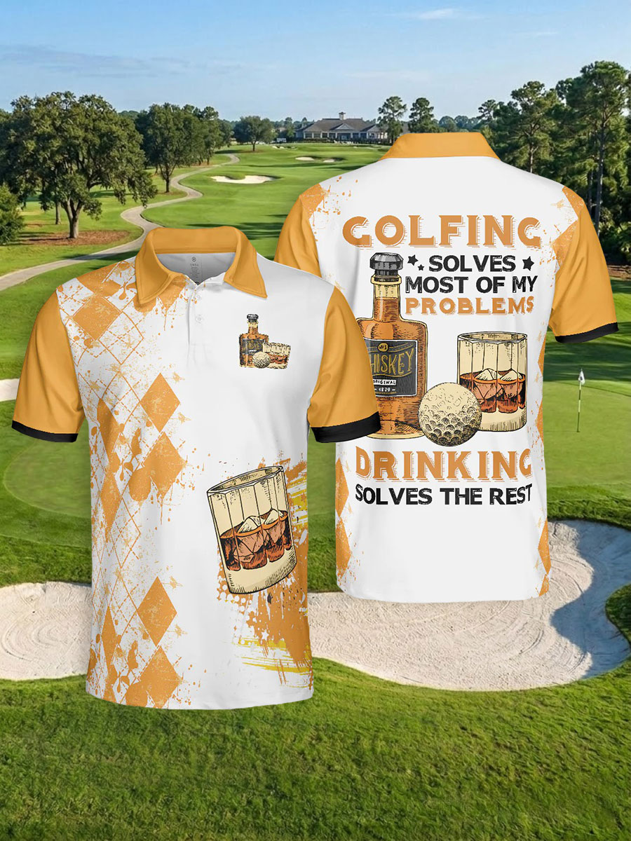 Men's Golfing And Drinking Solve My Problems Printed Shirt