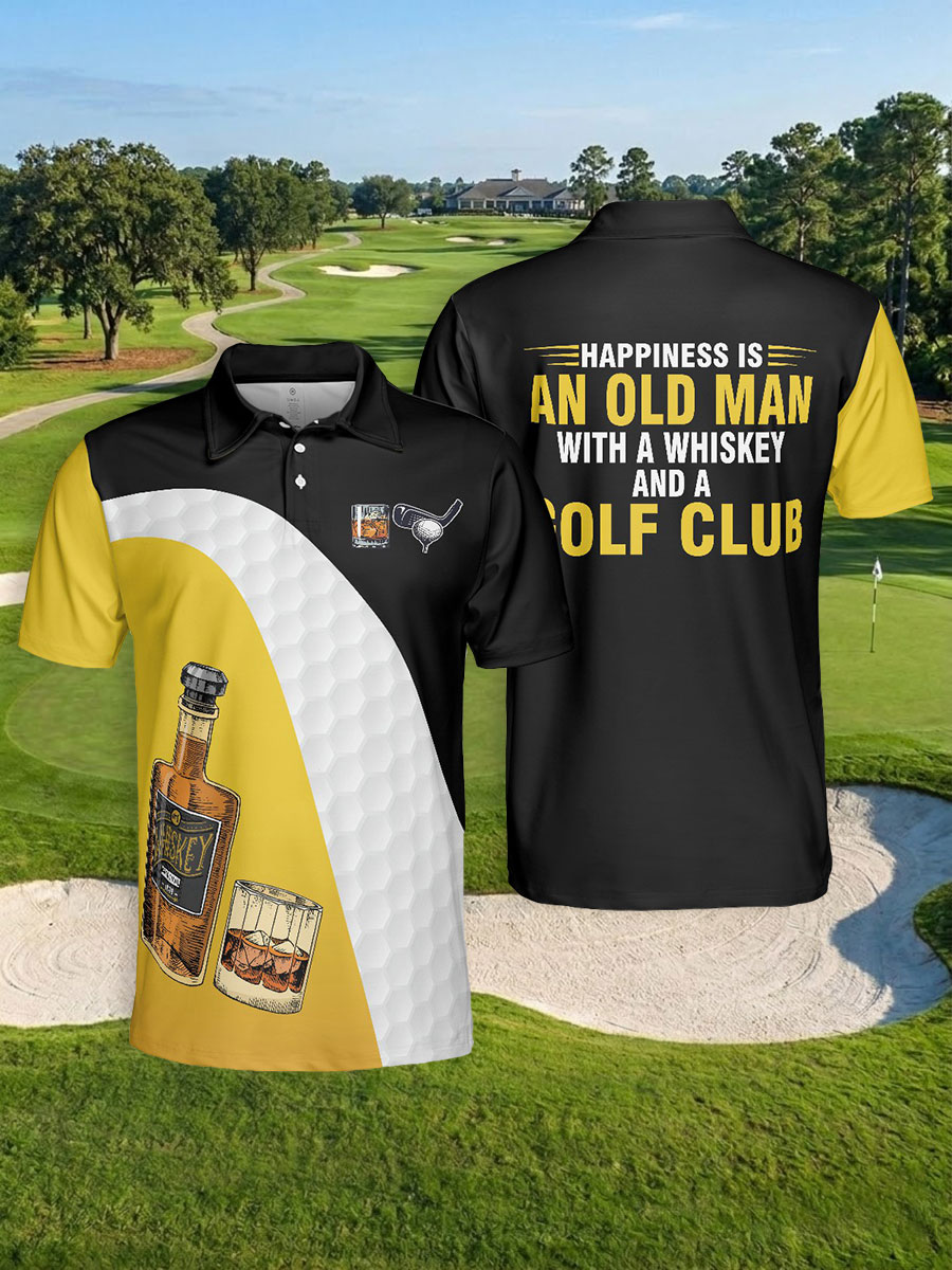 Men's Happiness Is An Old Man With A Whiskey And A Golf Club Printed Shirt