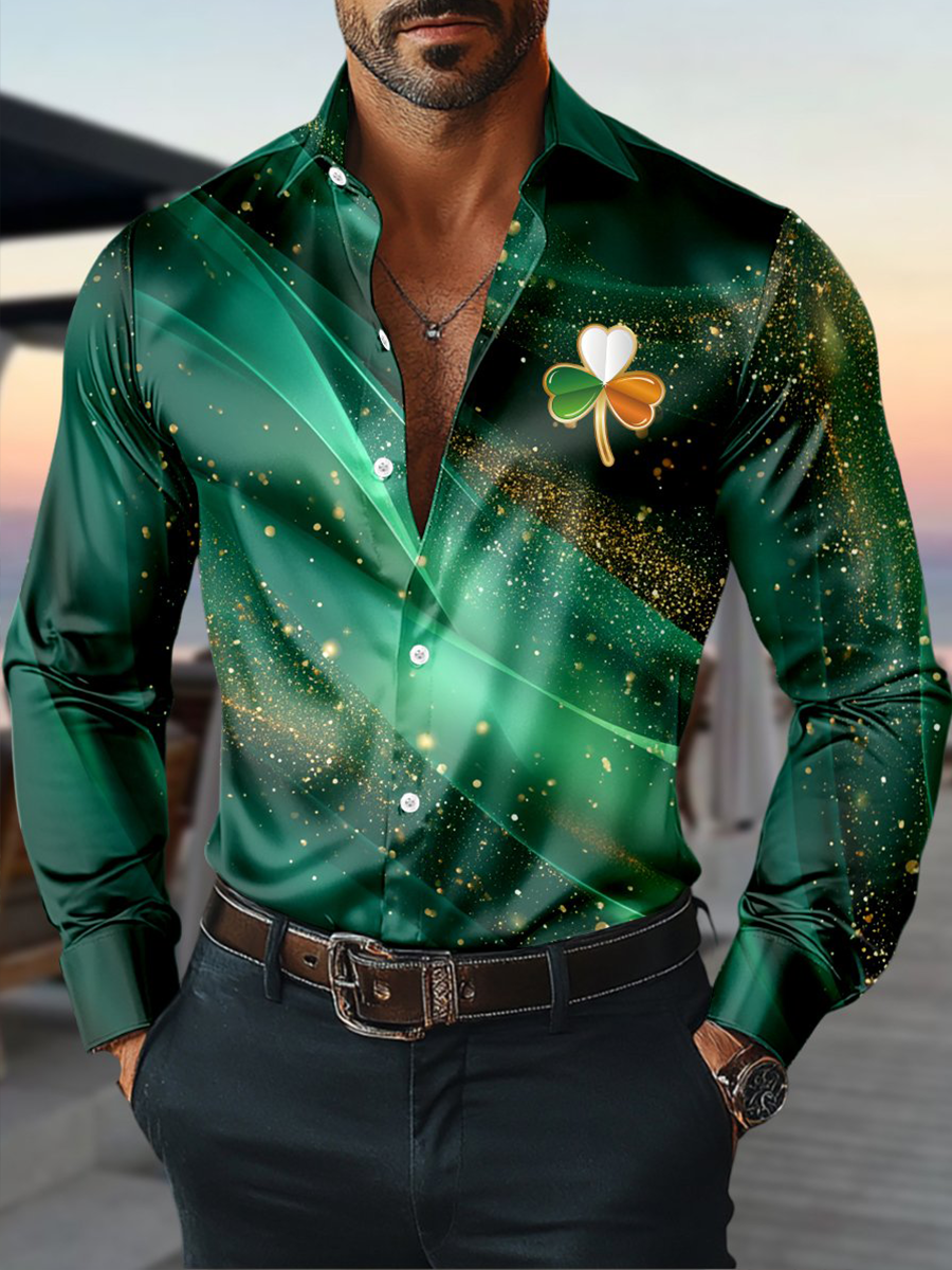 Men's St. Patrick's Day Shamrock Print Long-sleeve Shirt