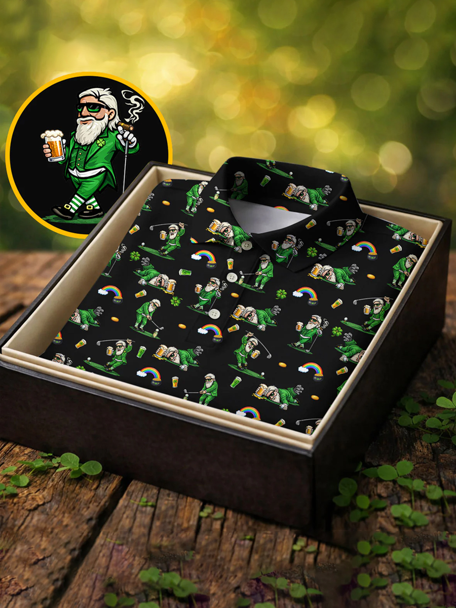 Men's Funny St. Patrick's Day Leprechaun Print Casual Long-Sleeve Polo