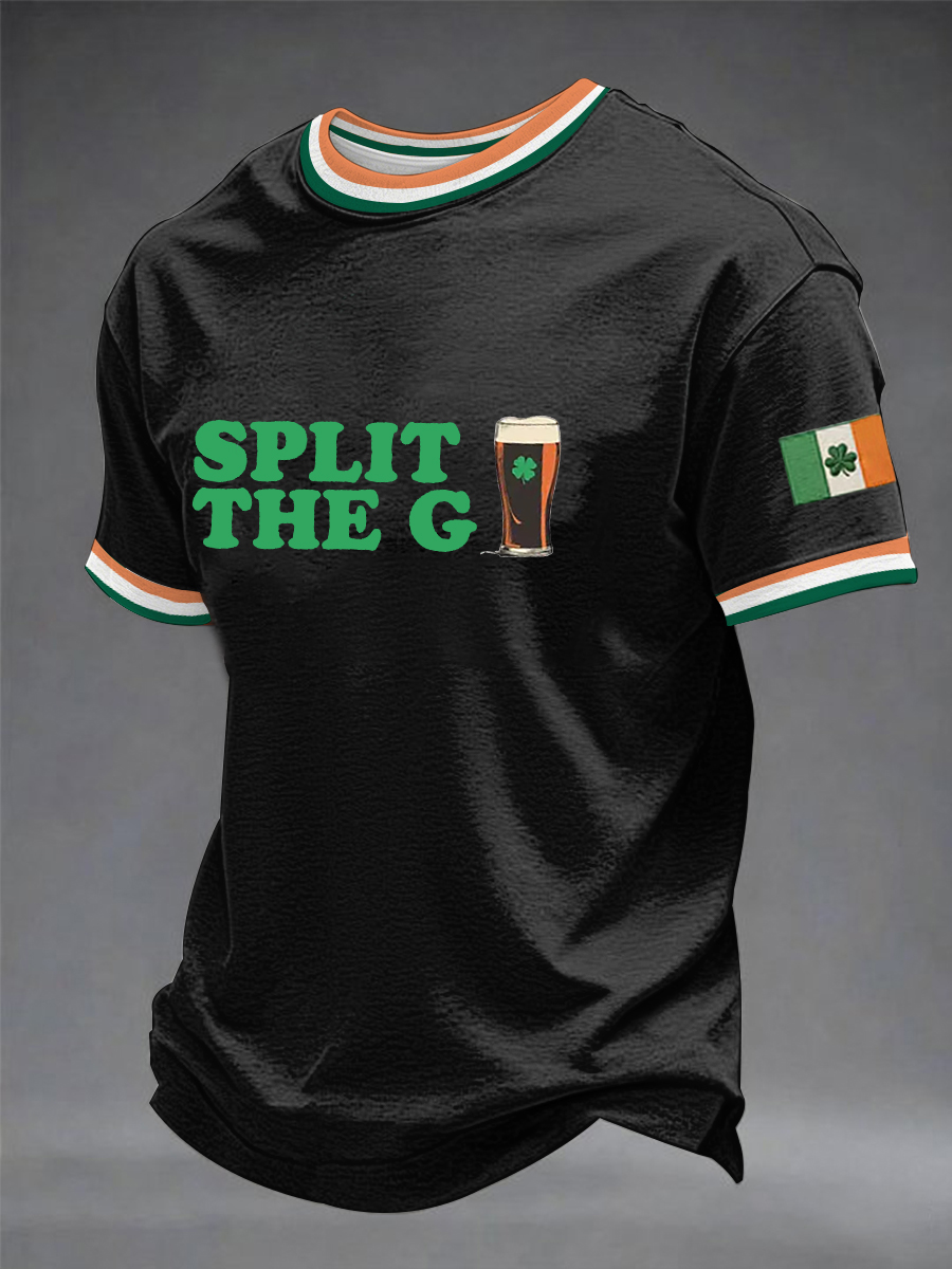 Men's St Patricks Day Funny Beer Shamrock Split the G Short Sleeve T-shirt