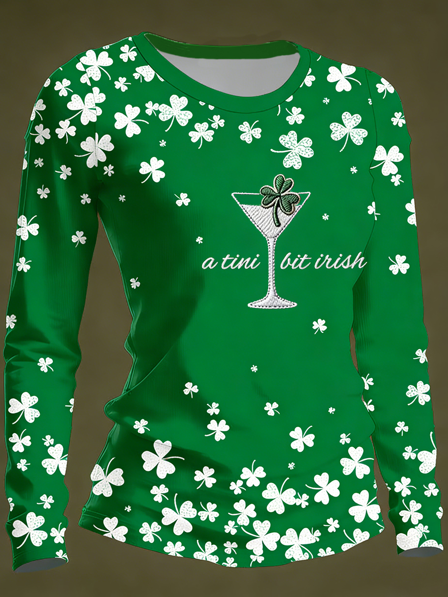 Women's St. Patrick's Day Print Round neck long sleeve T-shirt