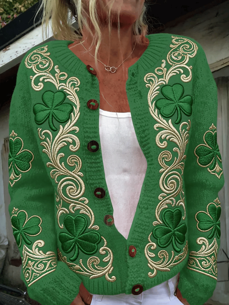 Women's St. Patrick's Day Print Cardigan-Style Knit Jacket