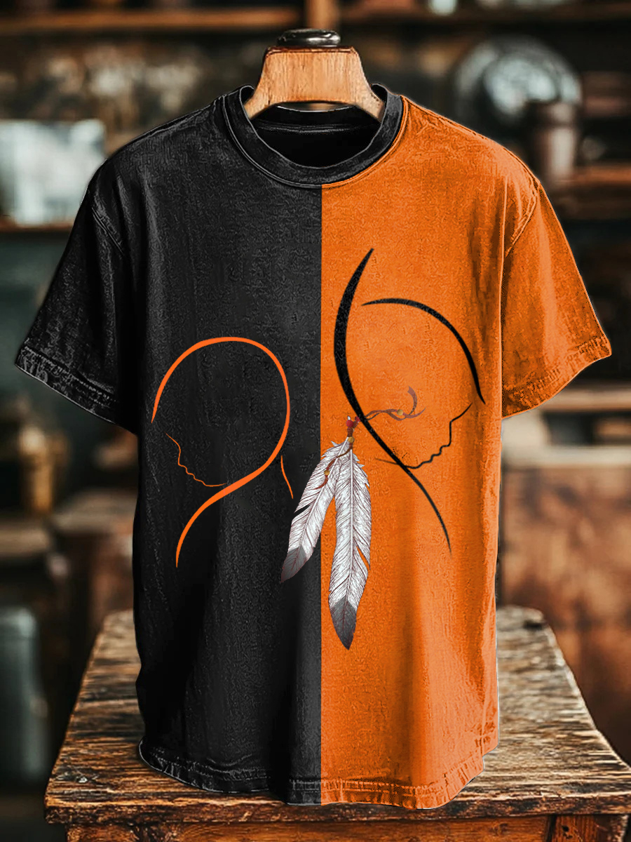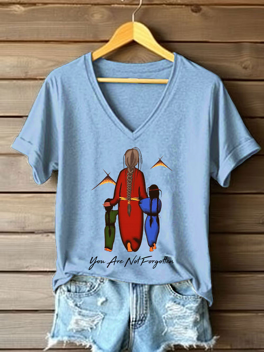Women's Tribal Feather Embroidered V-Neck T-Shirt