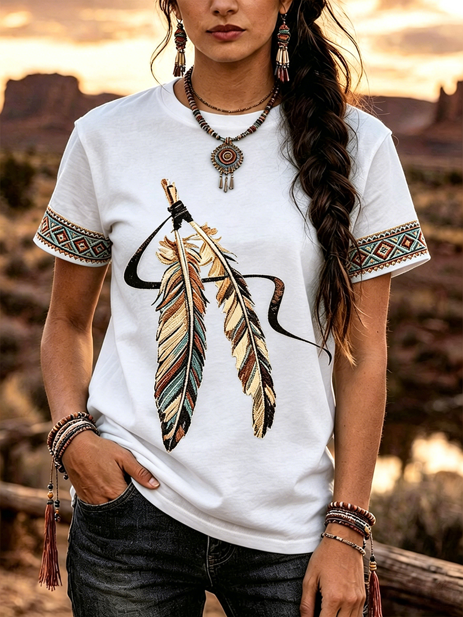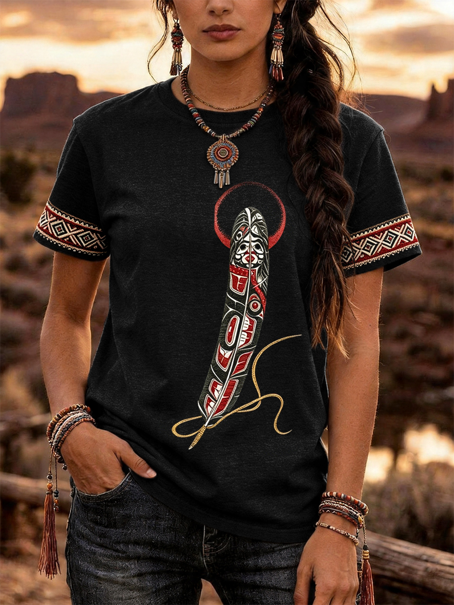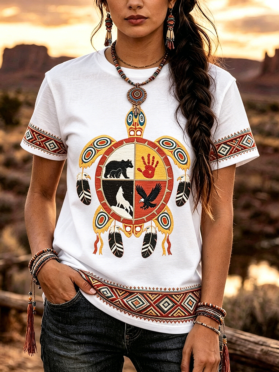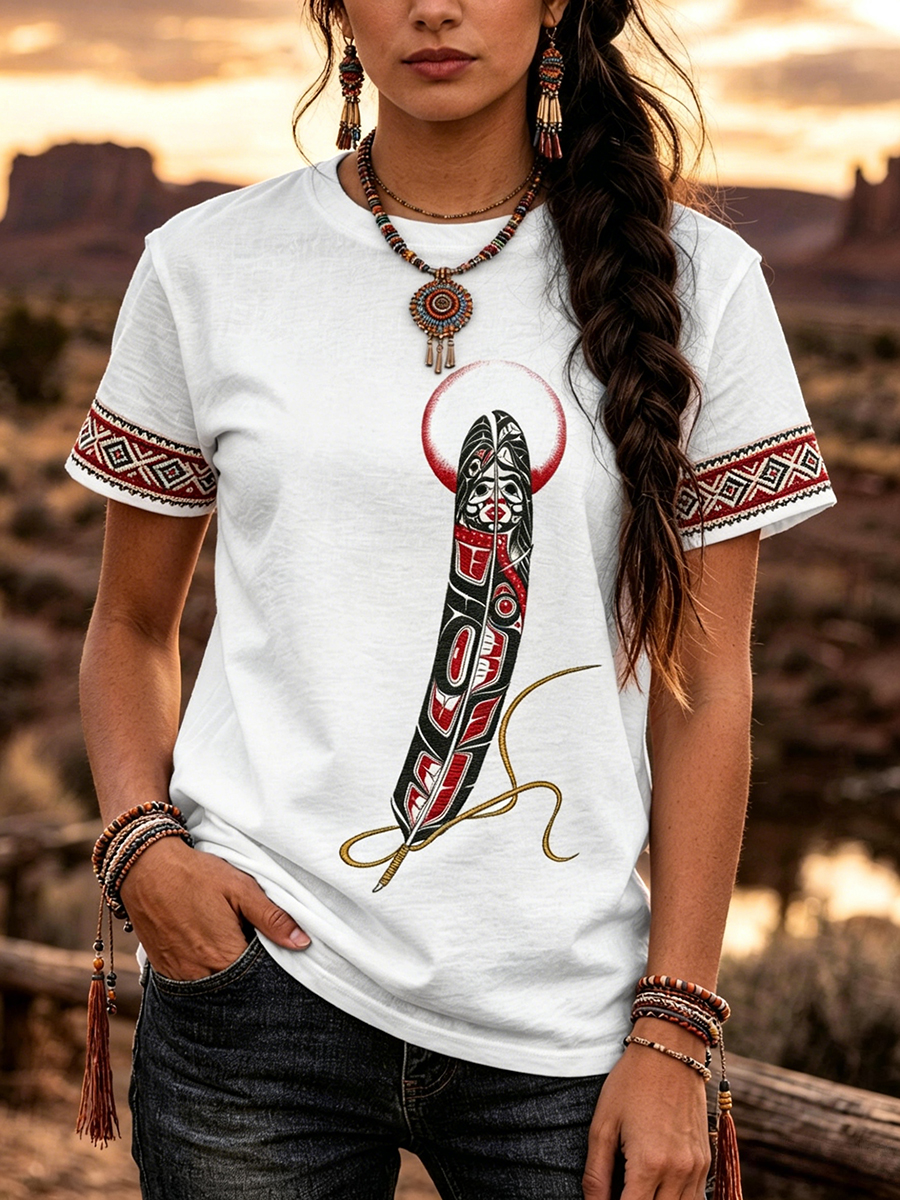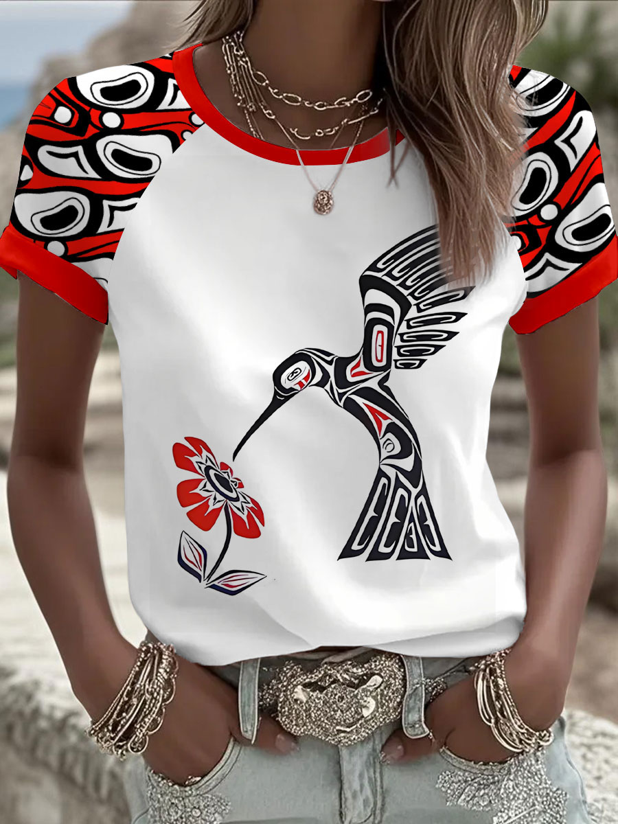 Women's Indigenous Floral Print Casual T-shirt