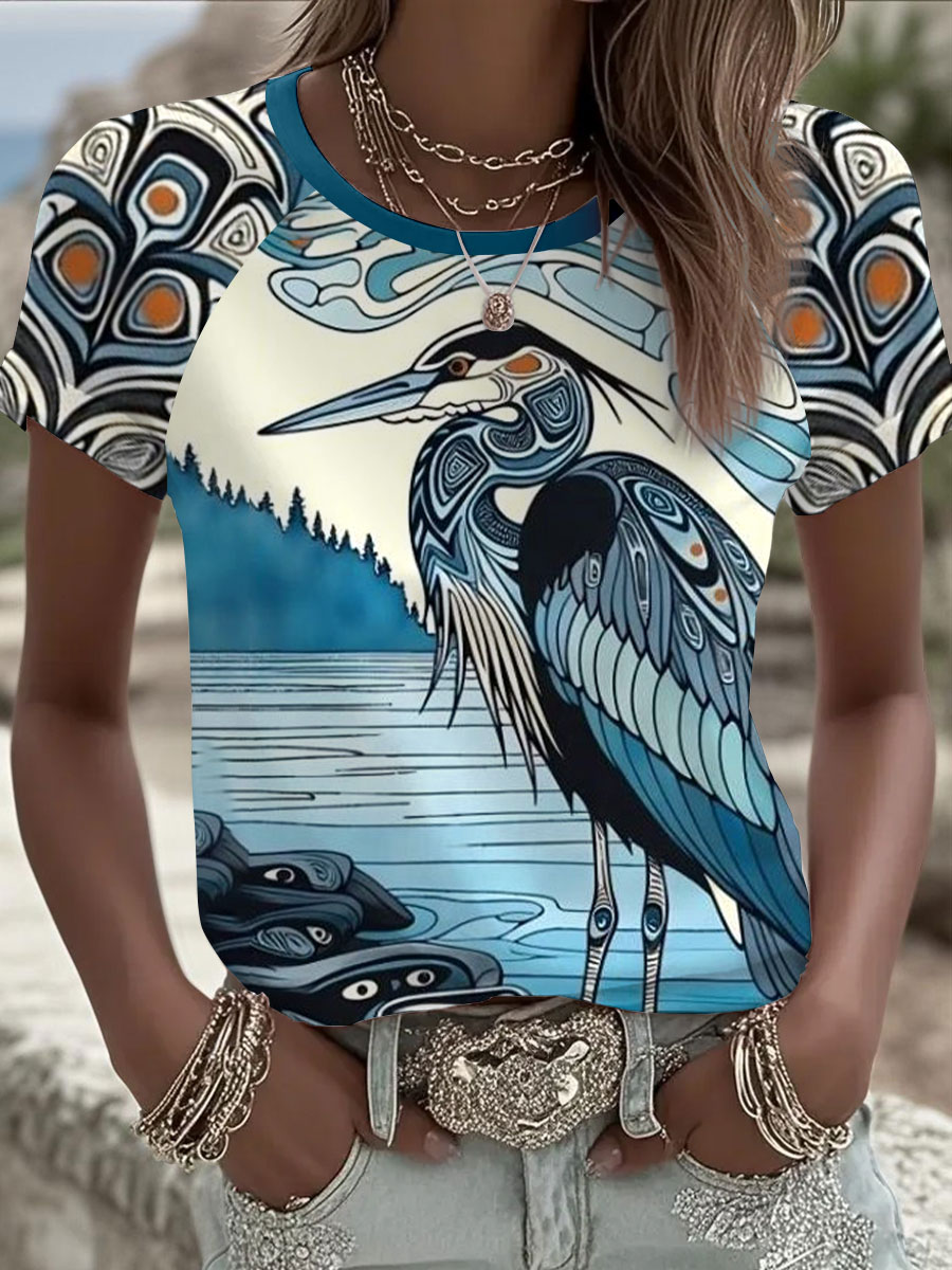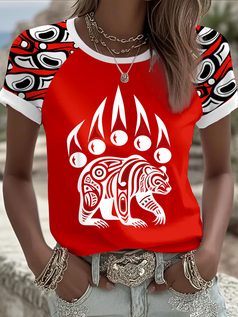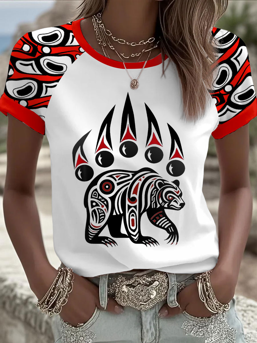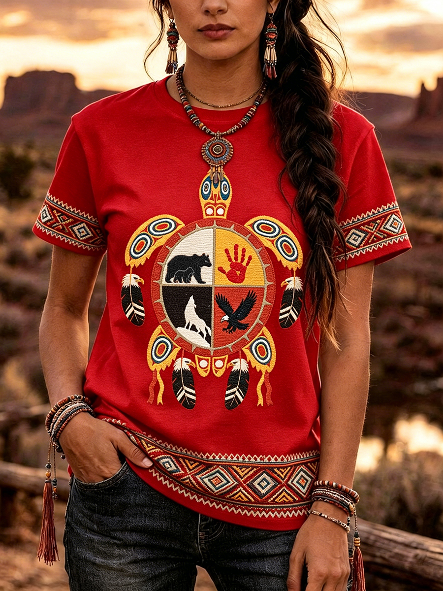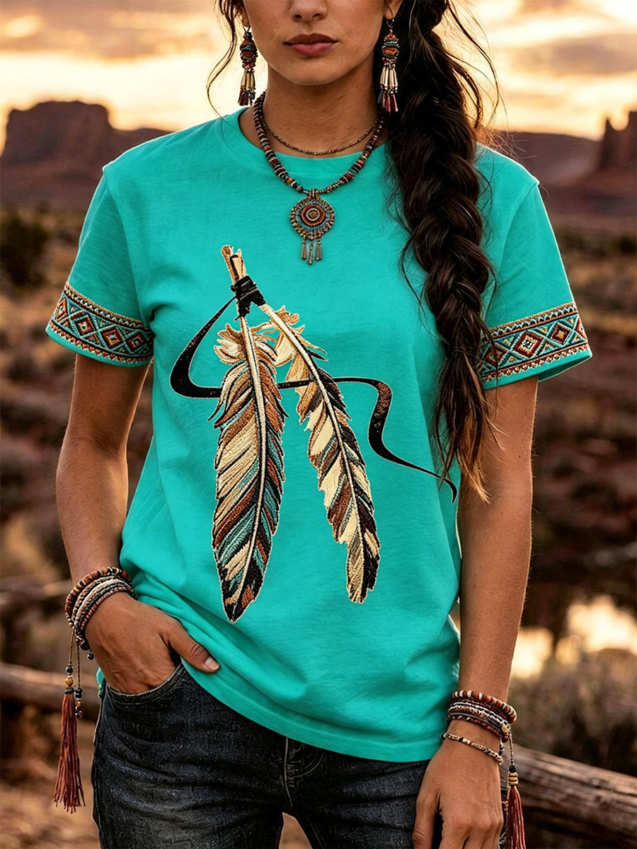 Women's Indigenous Floral Print Casual T-shirt