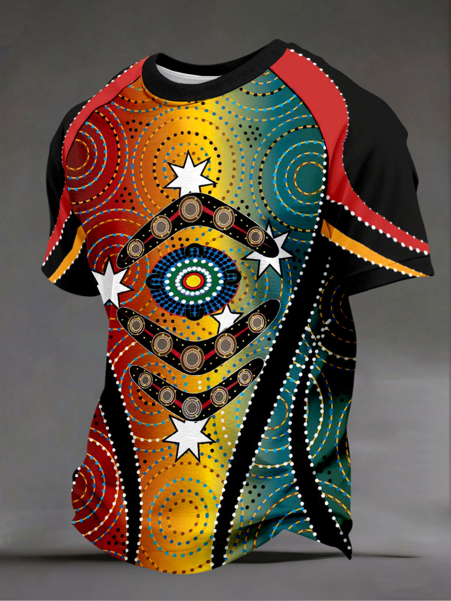 Men's Indigenous Totem Art Print Casual T-Shirt