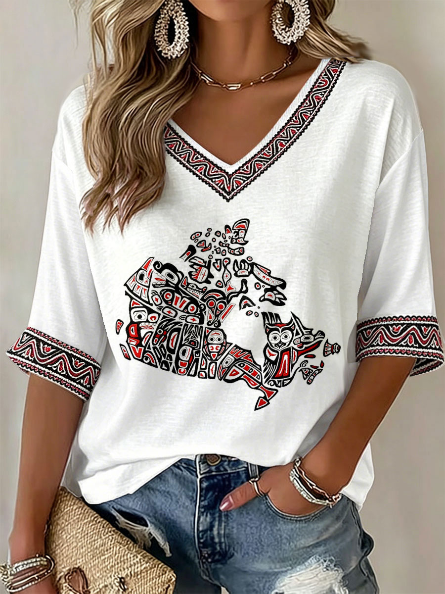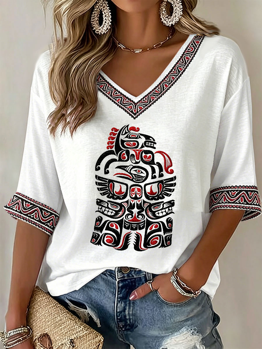 Men's Indigenous Totem Art Print Casual T-Shirt
