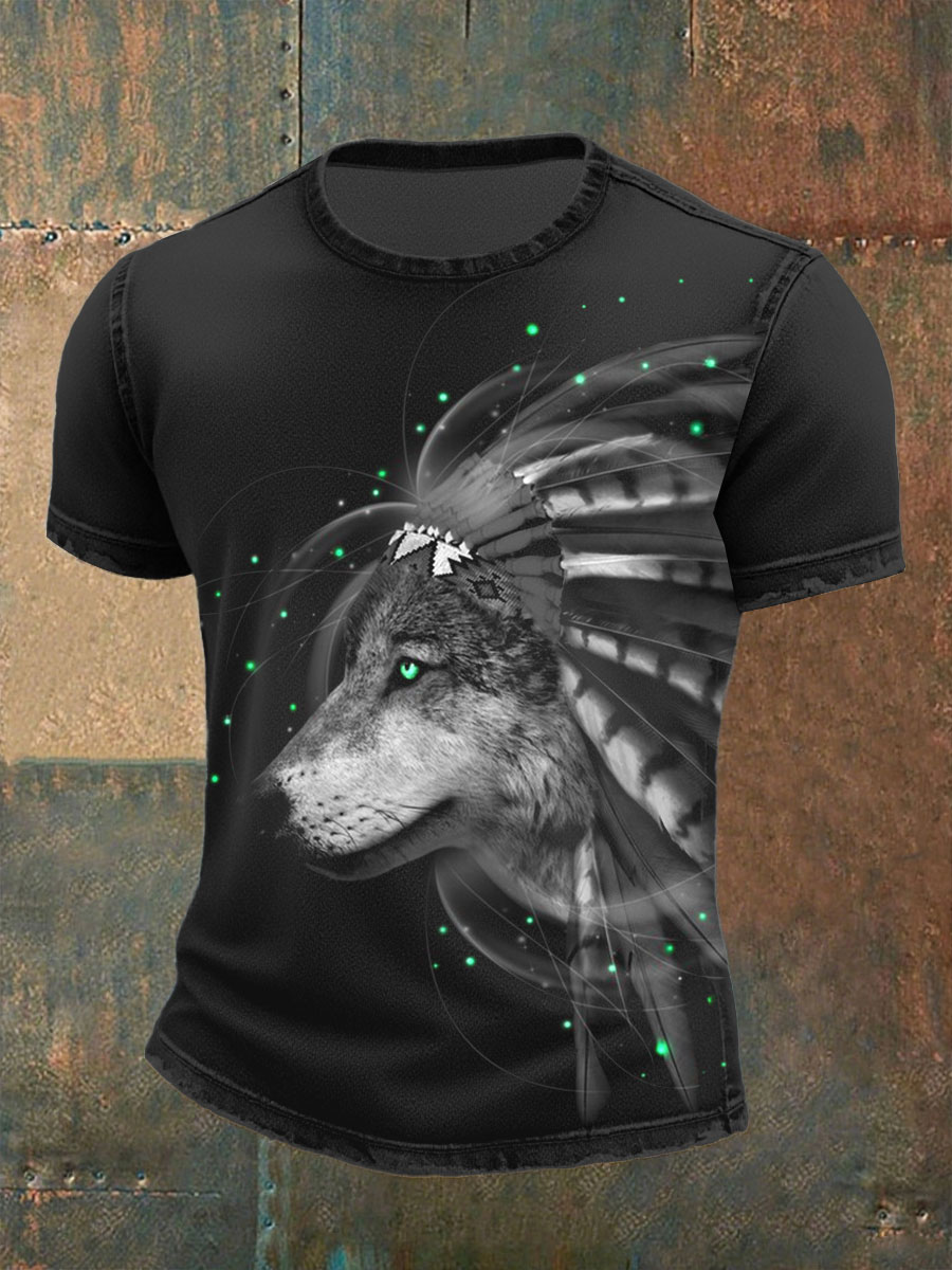 Men's Native American Wolf Hooded SS T-shirt